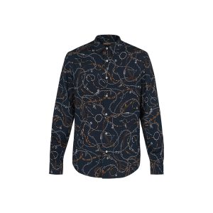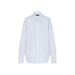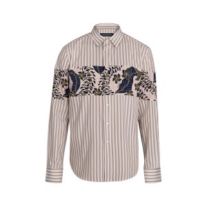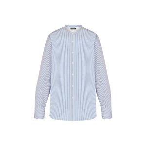 STRIPED GRANDAD COLLAR TAIL SHIRT
