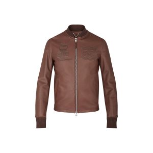 Leather Patch Blouson Brun Acajou