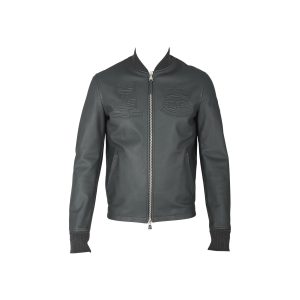 Leather Patch Blouson Gris Fonce