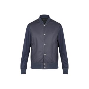 Varsity Leather Jacket Marine Foncé 2