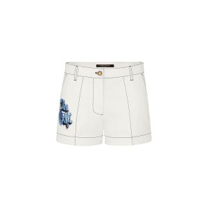 Cotton Gabardine Shorts With Embroidered Patches