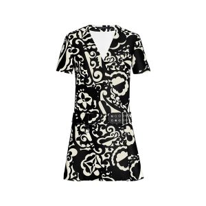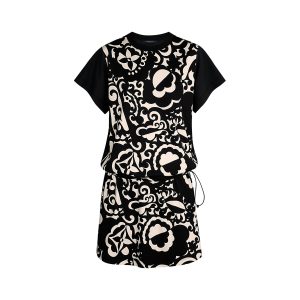 Printed Cotton Jersey T-Shirt Dress With Sequin Embroidery