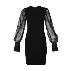 Silk Dress With Contrasting Monogram Lace Ruffles