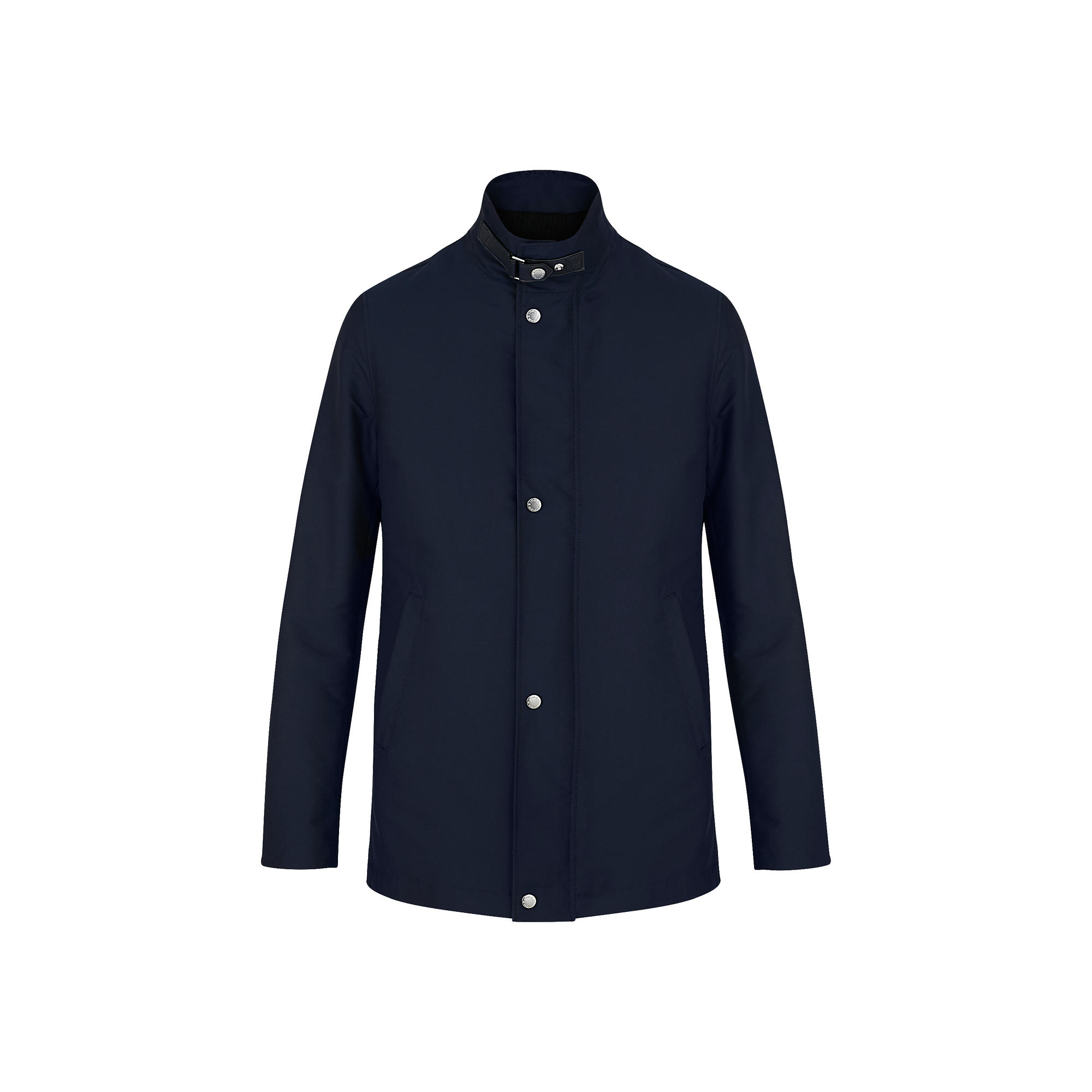 Tailored from double face technical satin, this business parka offers two looks in one, with a zip-in gilet that can be worn alone to reveal a signature Karakoram stitching pattern. The collar features an elegant leather tab.