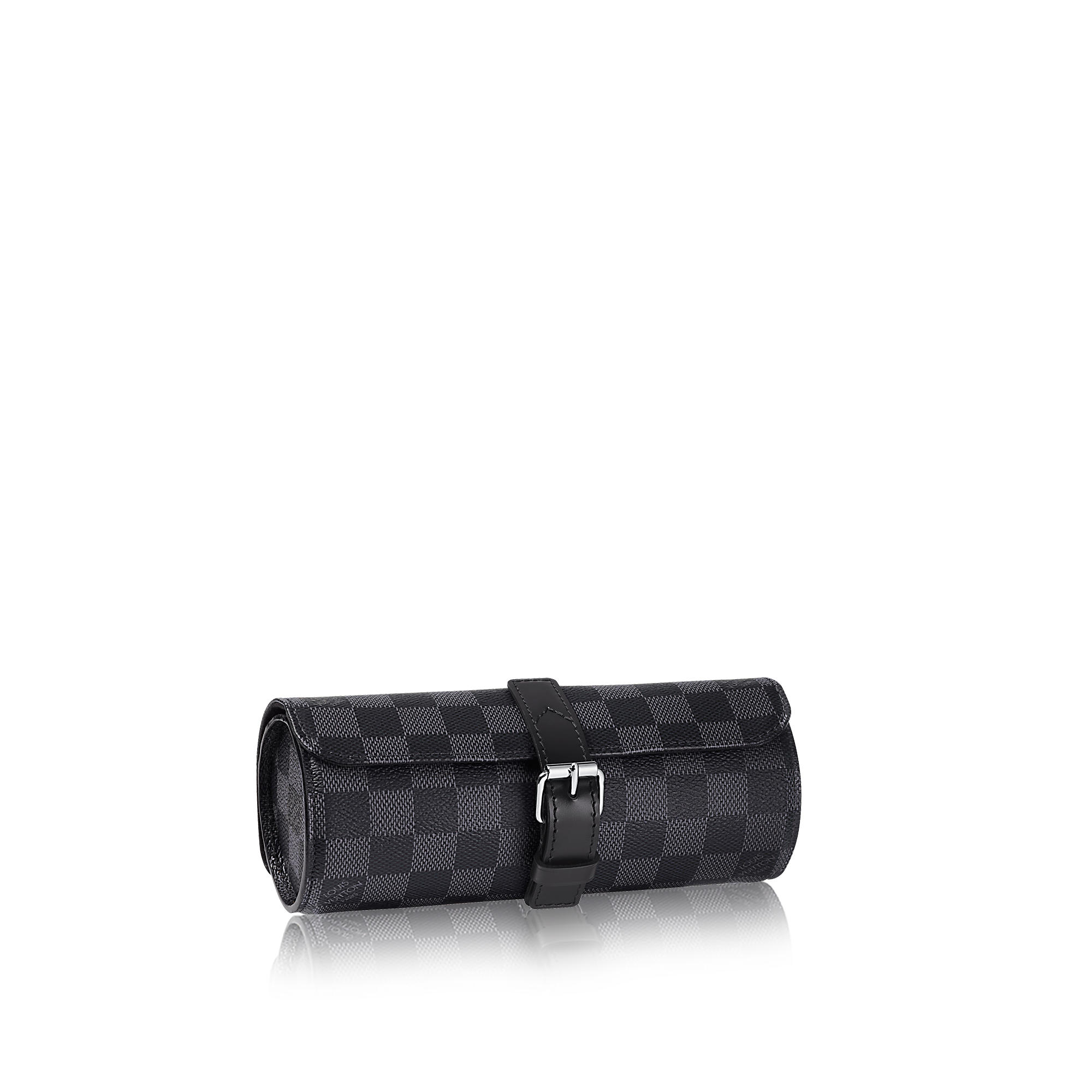 Providing soft and refined protection for up to three men’s timepieces, and perfect for slipping into a suitcase or bag, the 3 Watch Case in Damier Graphite canvas is an elegant accessory for travel.