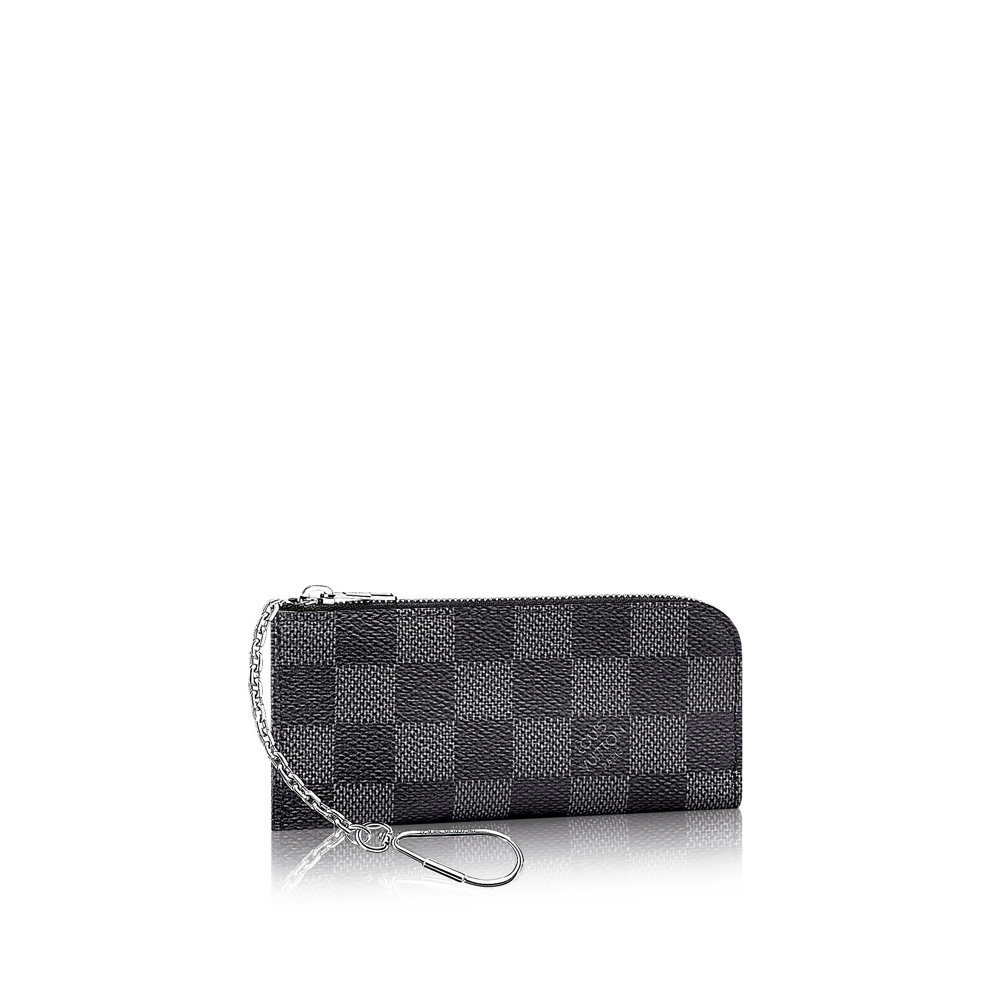 This compact key holder in Damier Graphite Canvas holds four keys on individual brass hooks. An elegant accessory to complement any bag from the collection.
