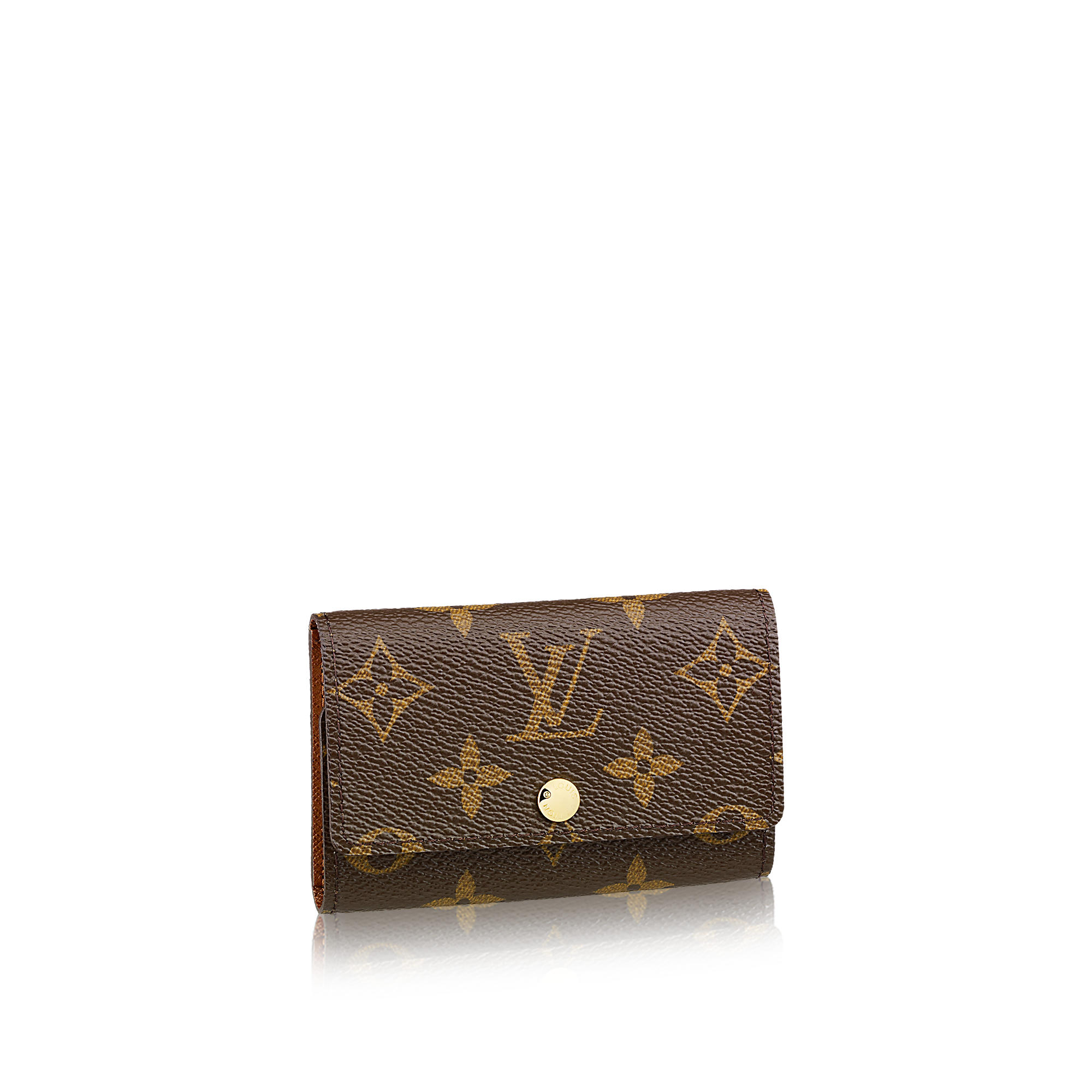 This compact case holds six keys on individual brass hooks. In Monogram canvas, it is a practical accessory for a handbag or briefcase.
