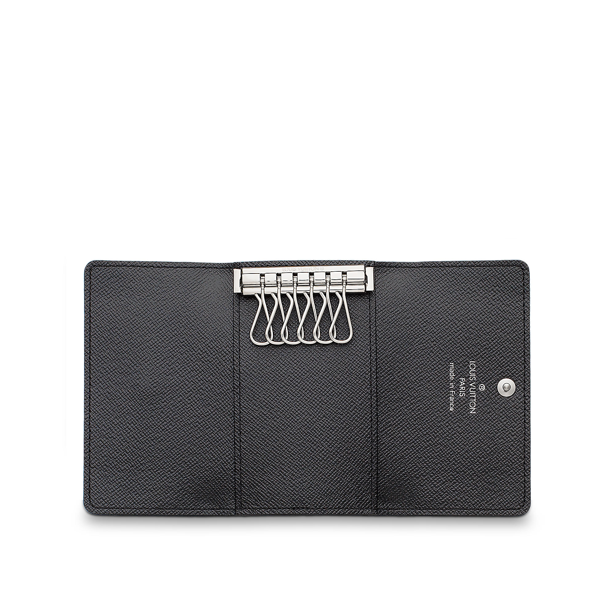 In Damier Graphite canvas, this 6 keys holder has a decidedly masculine, urban classic spirit that is modern yet functional. An elegant accessory for pocket or briefcase.
