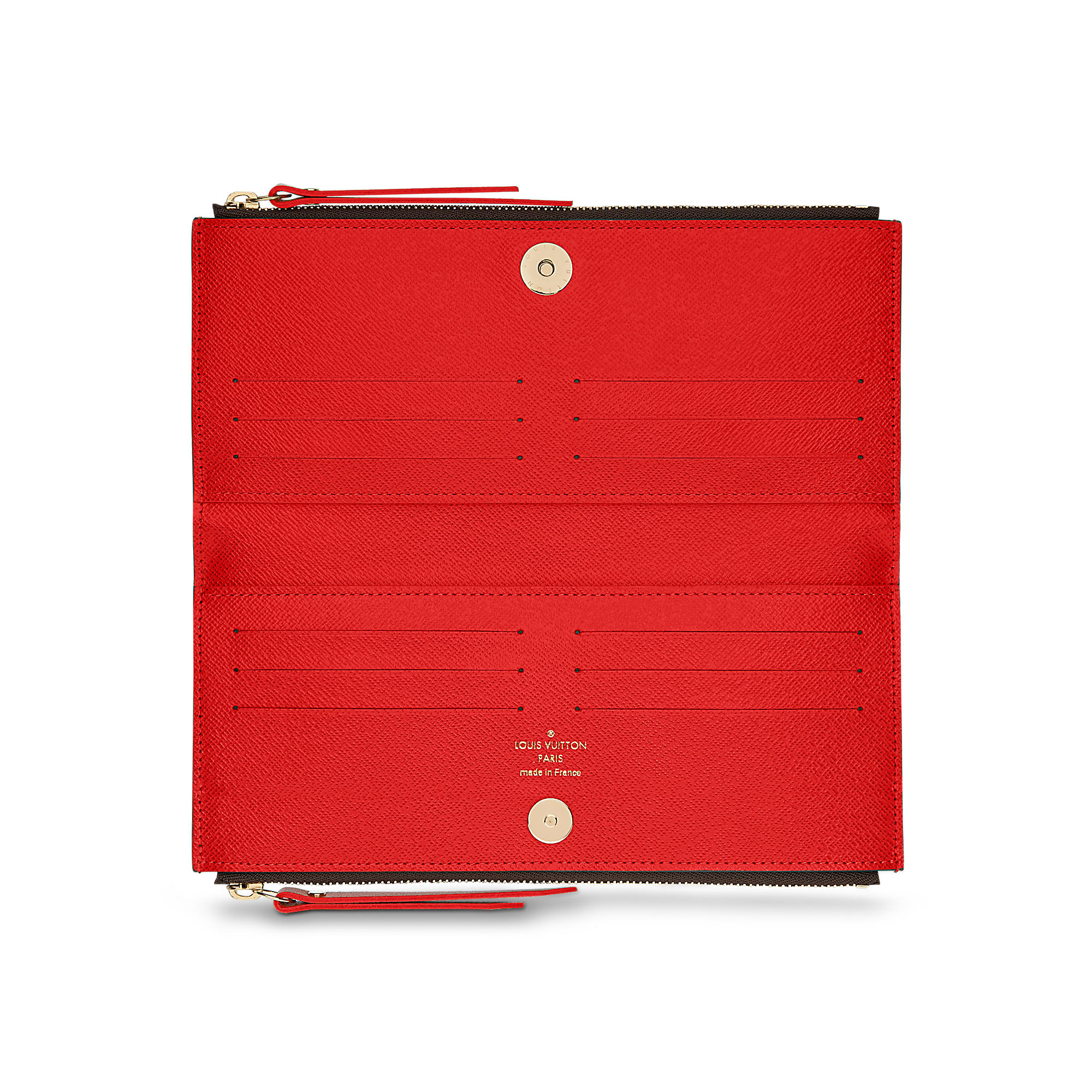 Combining Louis Vuitton’s iconic Monogram canvas with a brightly coloured leather lining, the stylish Adele wallet has a modern, slim-line design with two leather zippers and a magnetized button for easy opening. It can also be carried as a clutch.