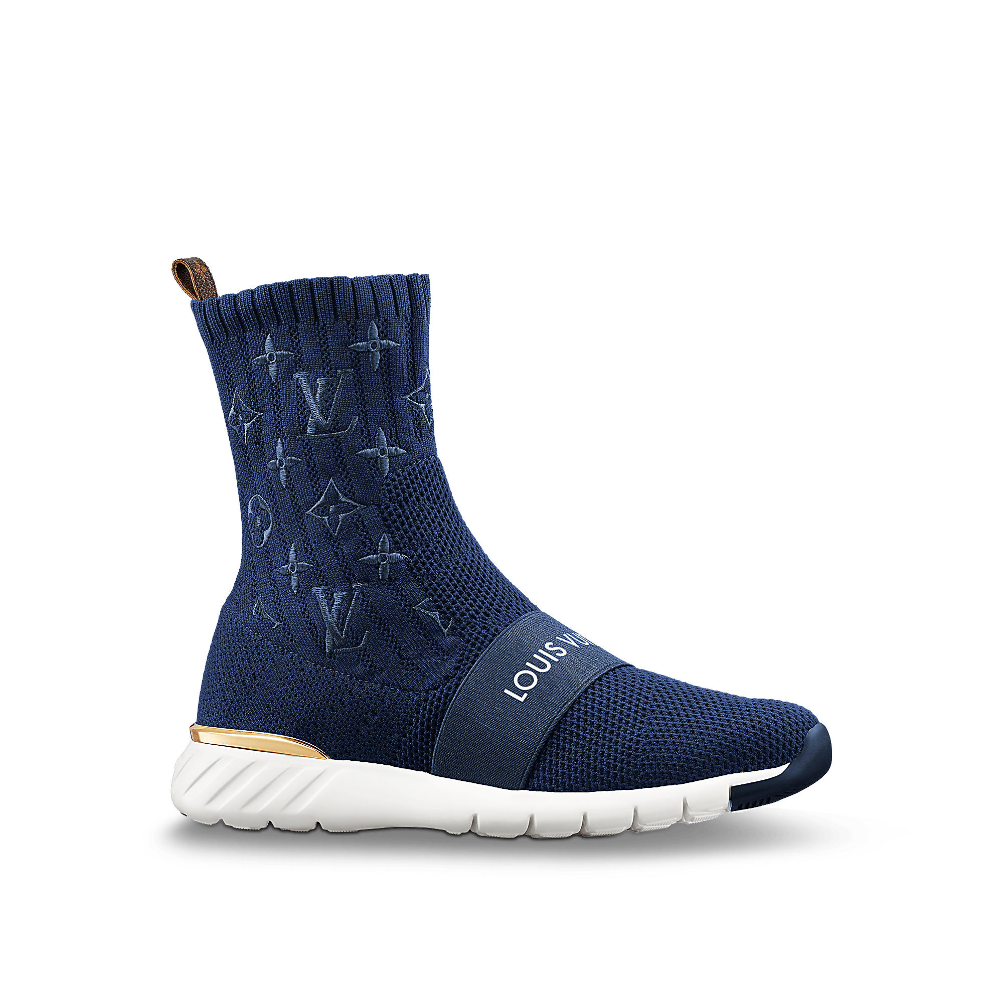 The perfect urban sneaker boot, this ultra-lightweight design in Monogram-embroidered stretch fabric features an easy sock-like fitting and a supple rubber outsole with Louis Vuitton’s emblematic “Malletage” pattern.