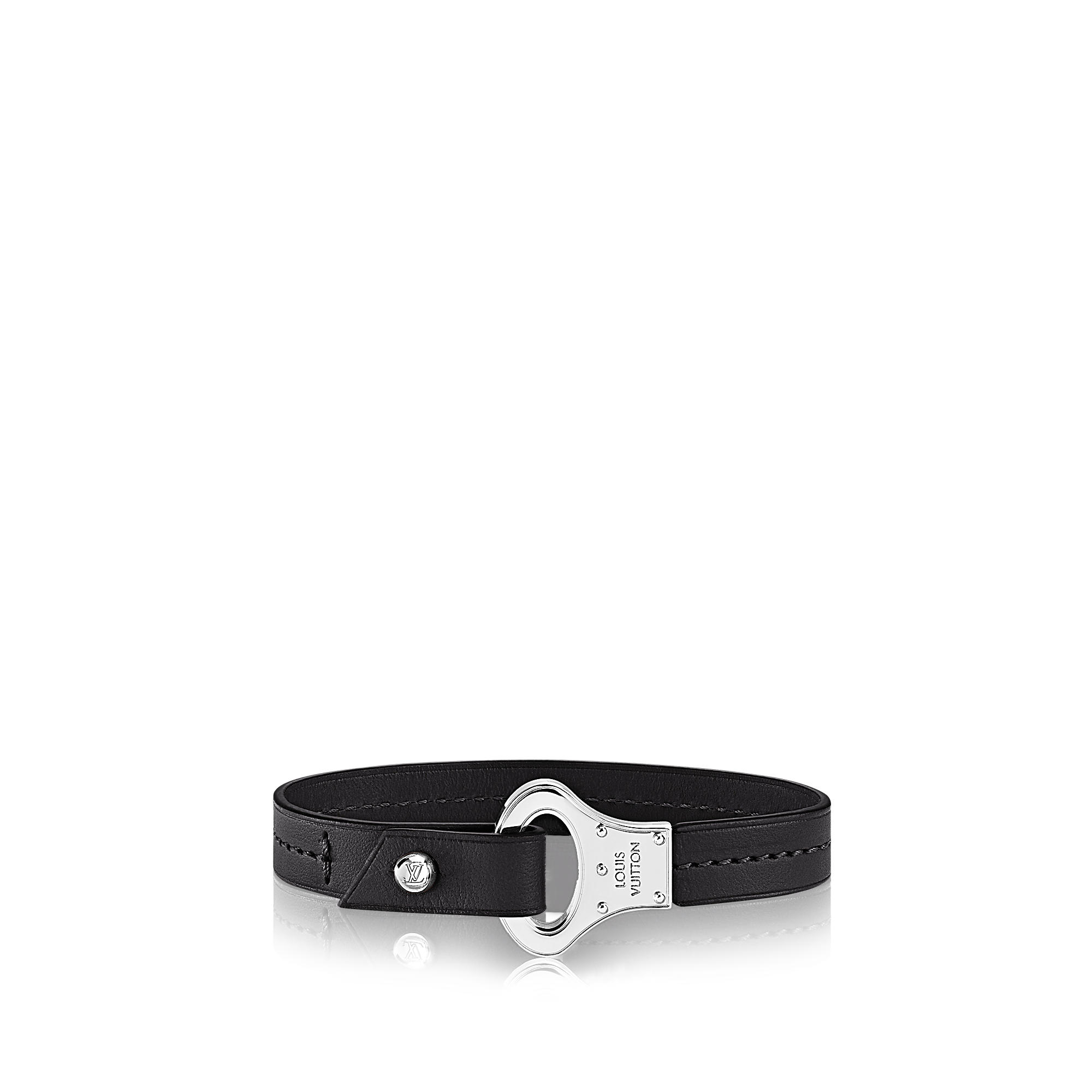 Available in two natural colours, this jewel-like bracelet in calf leather features a locking system inspired by the handles of the Maison’s legendary trunk. Casual and chic, its metallic piece is engraved with a discrete Louis Vuitton signature.