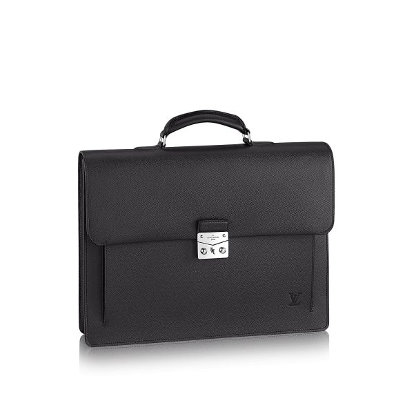 The Associé briefcase means business. Crafted of durable Taiga leather, the bag’s modern design combines status with subtlety: witness the handsomely stitched flap and  elegant metal lock. The spacious interior is organized for utmost efficiency.