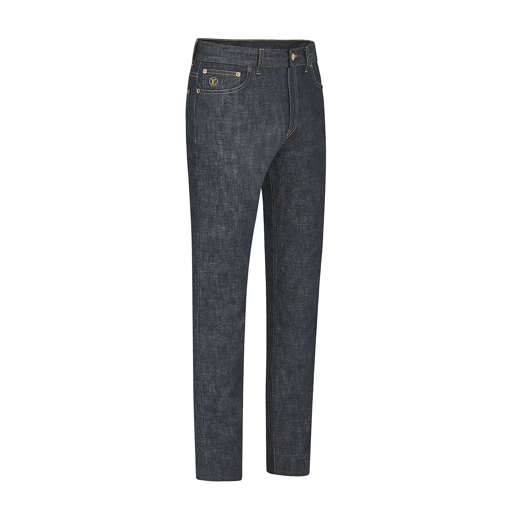 These slim-fit jeans are cut from authentic Japanese raw denim that will develop its own unique patina as it breaks in. An embroidered LV circle logo on the front pocket and a Monogram canvas label at the back add subtle signatures.