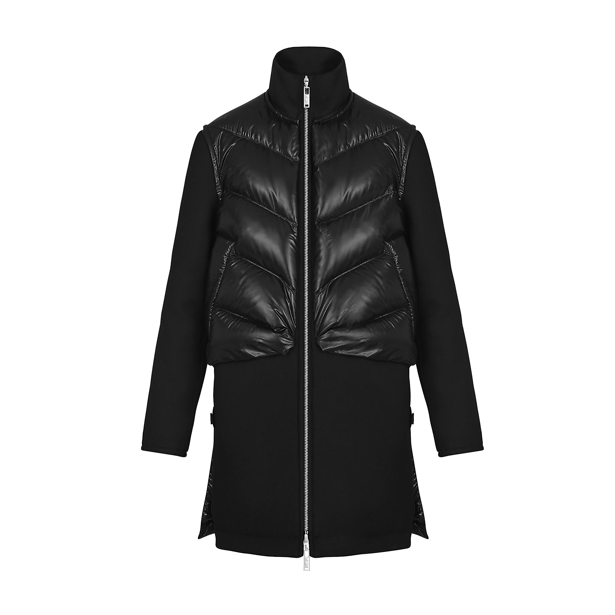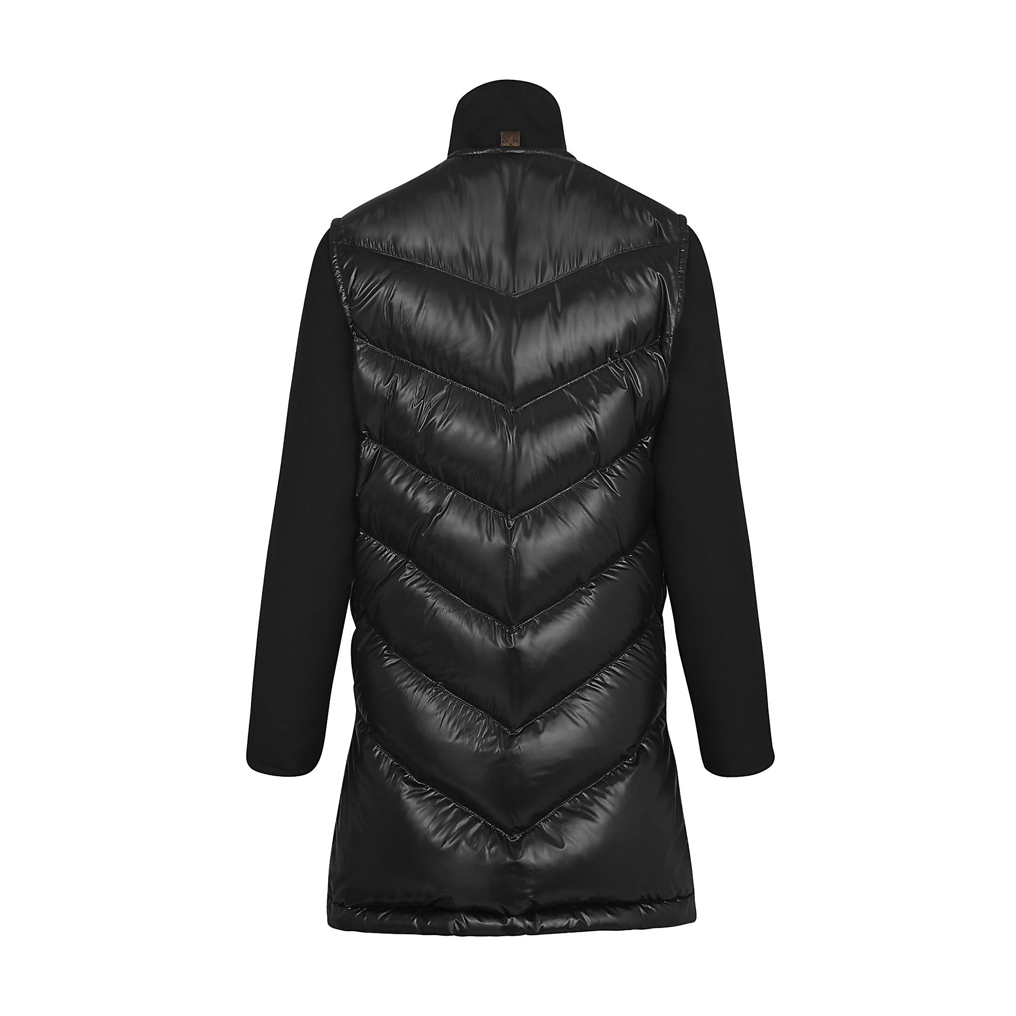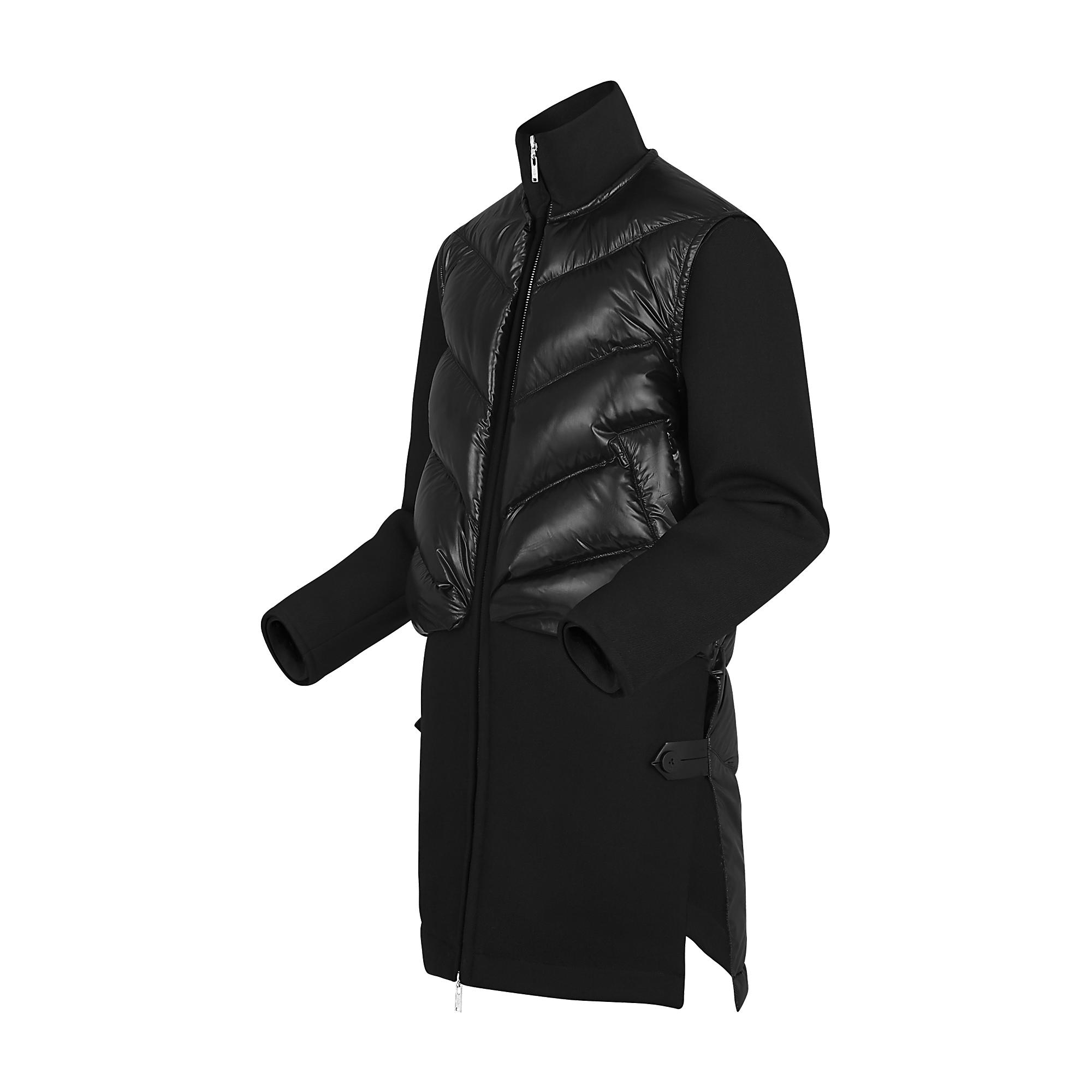 This bi-material down jacket is a great mix of style and function. Technical fabric and wool gabardine offer an eye-catching contrast of shiny and matte, while the jersey collar and zip are a nod to the season’s American sportswear theme. Signatures include V stitching, a Monogram canvas label and a silver LV zipper.