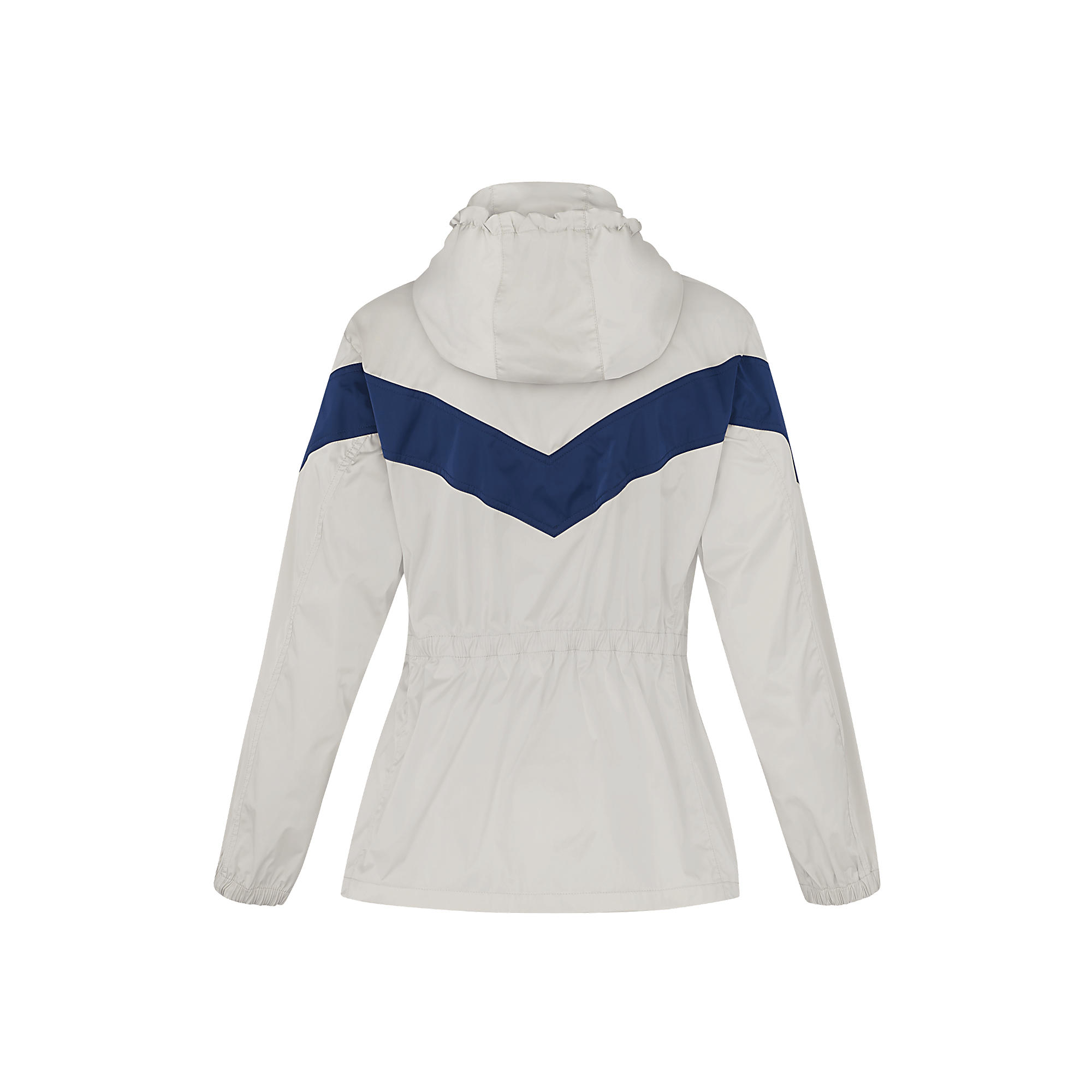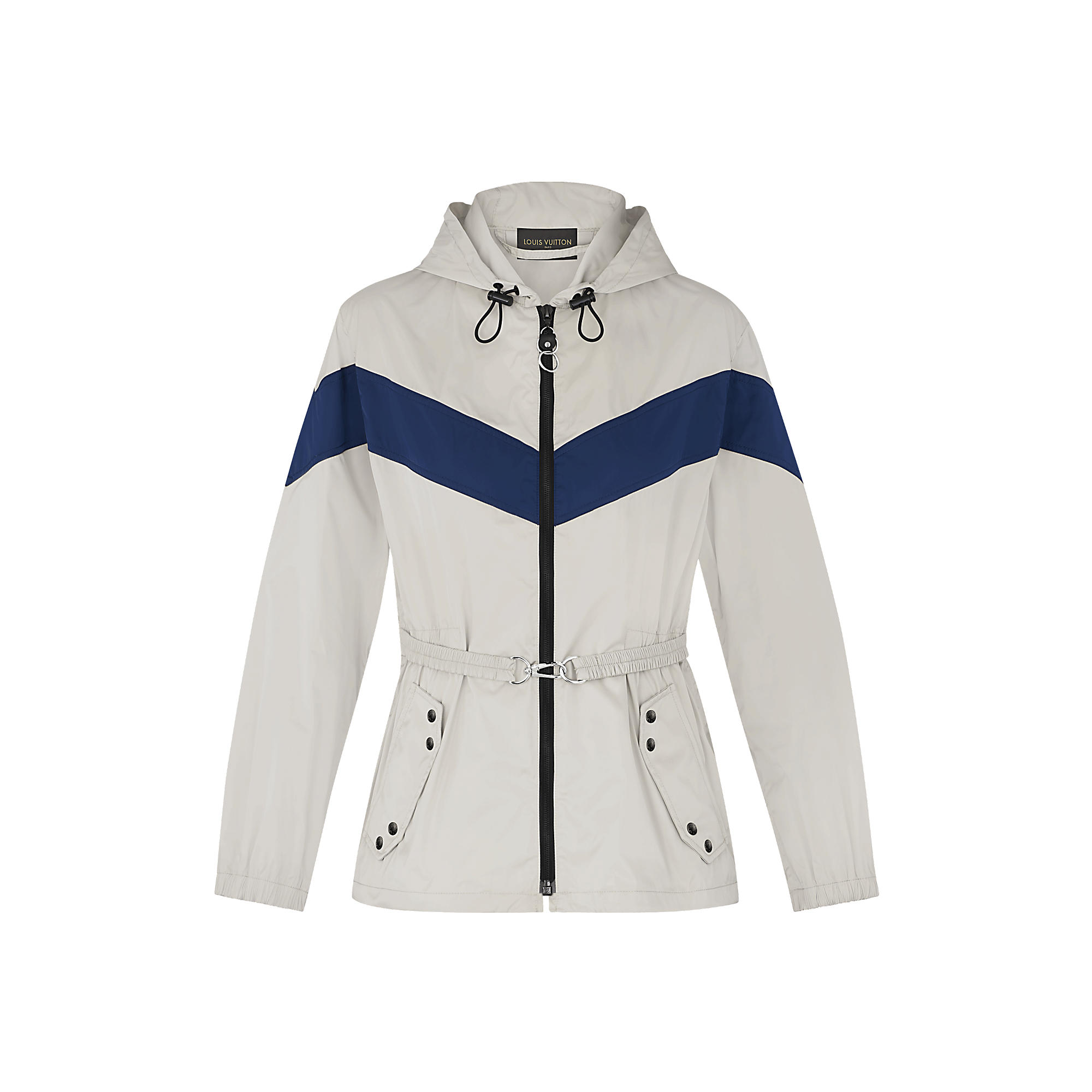 This hooded parka in technical radzmir features a V on the front, adding contrast and a sporty feel. The waist is adjusted with an elasticated belt that fastens with a snaphook.
