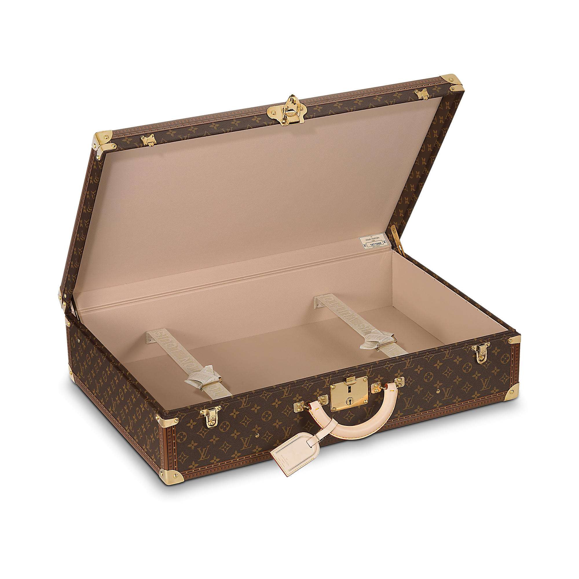 – Louis Vuitton “S” lock with key, reinforced with two complementary trunk latches