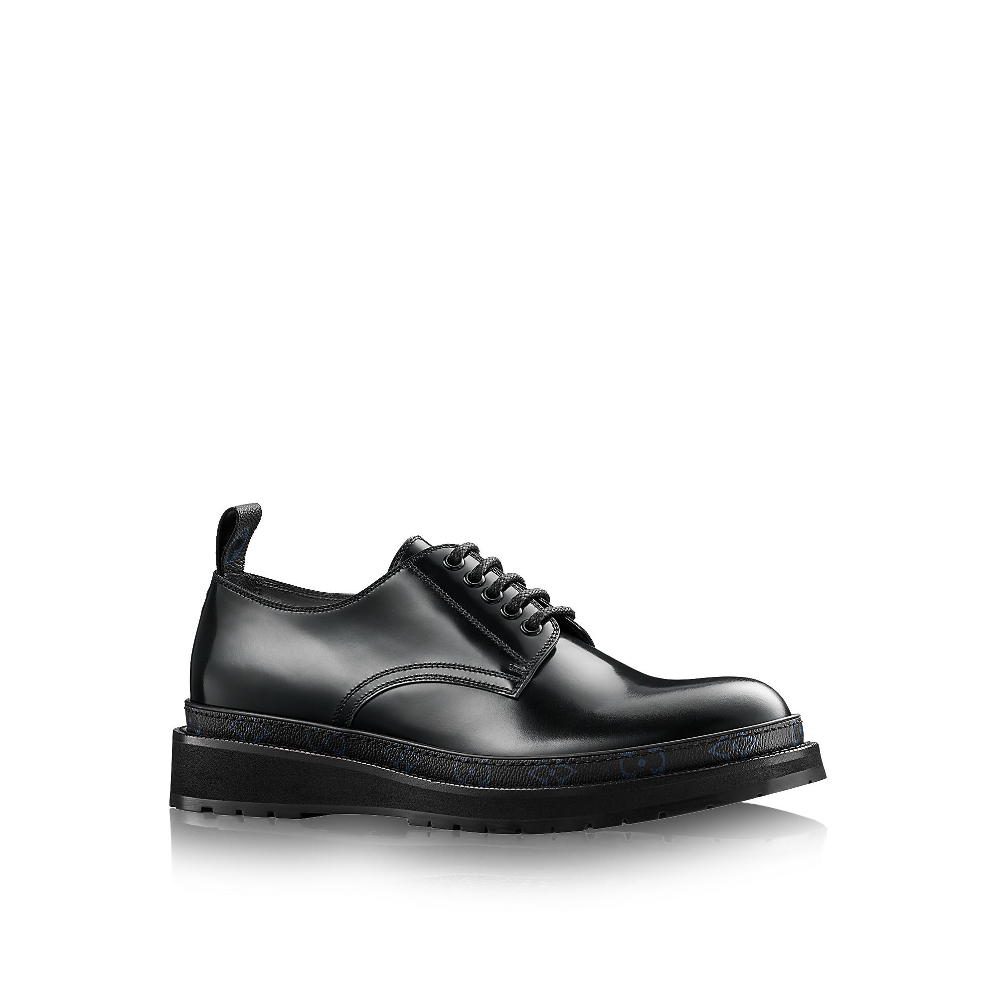 Derby in glazed calf leather with Monogram canvas welt and light micro rubber outsole.