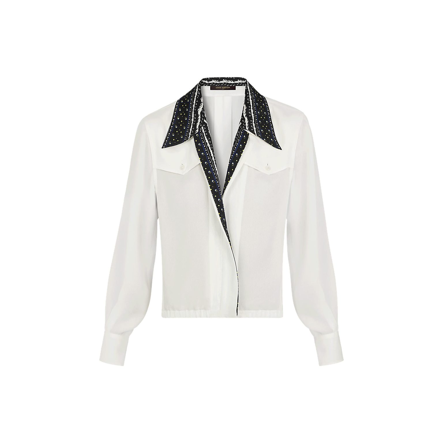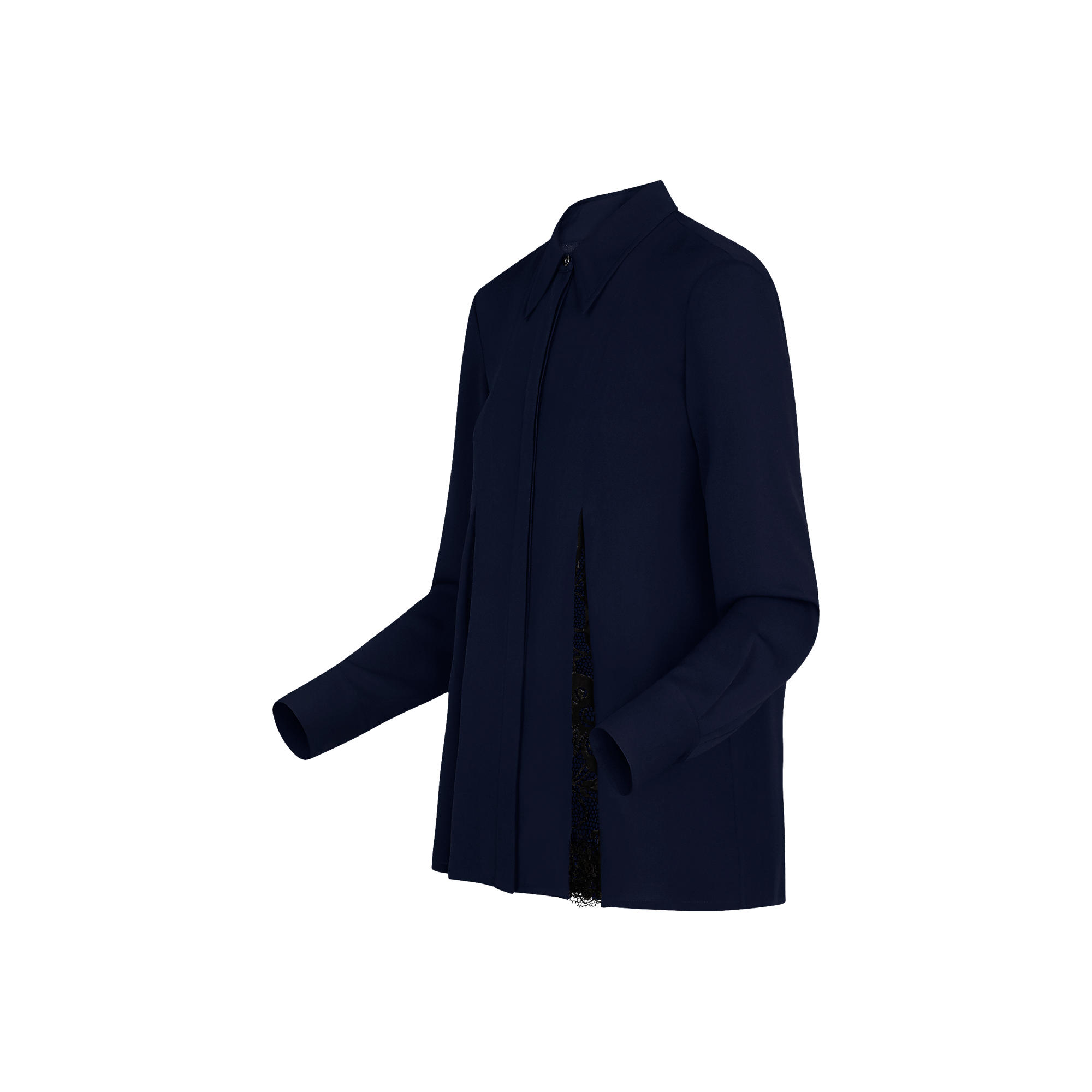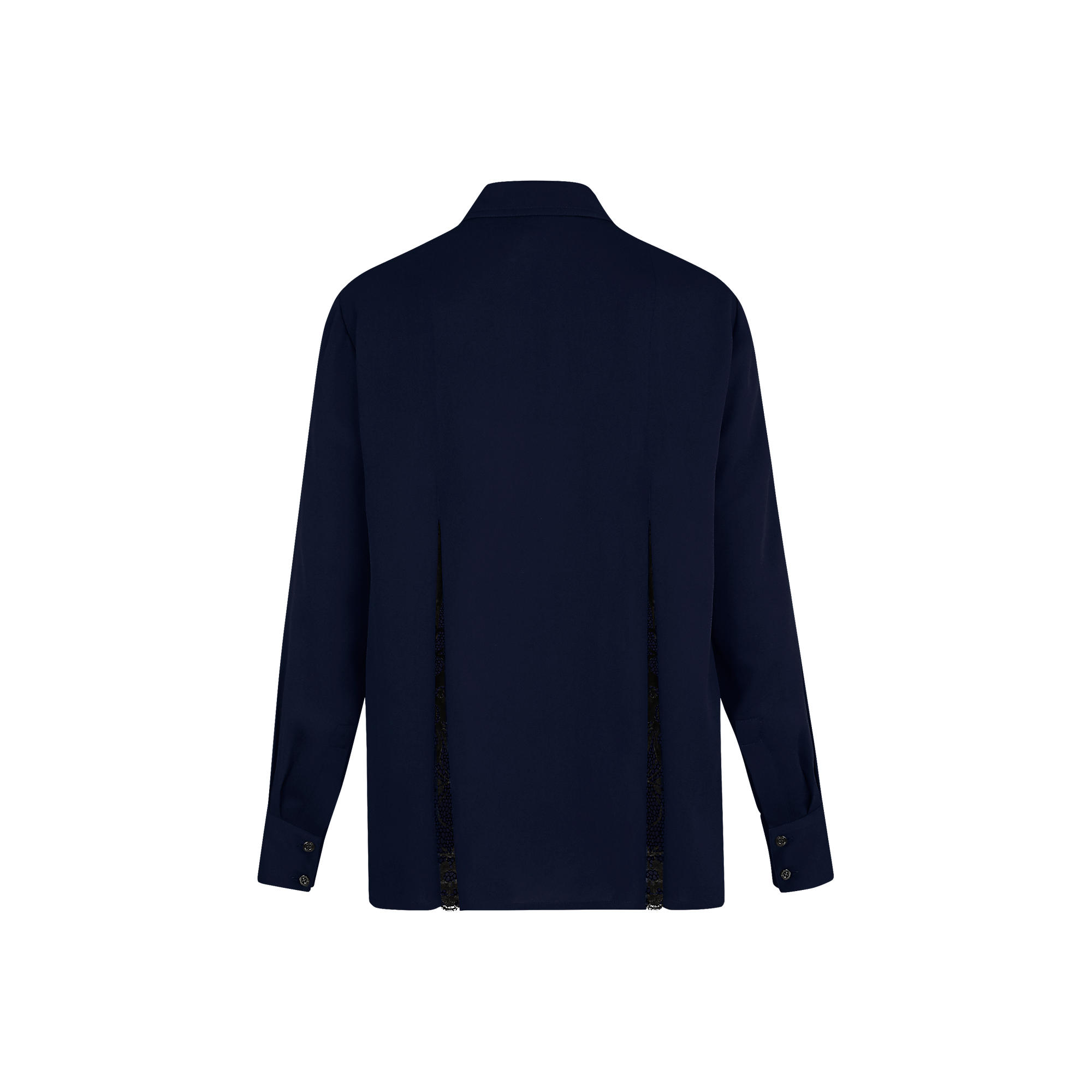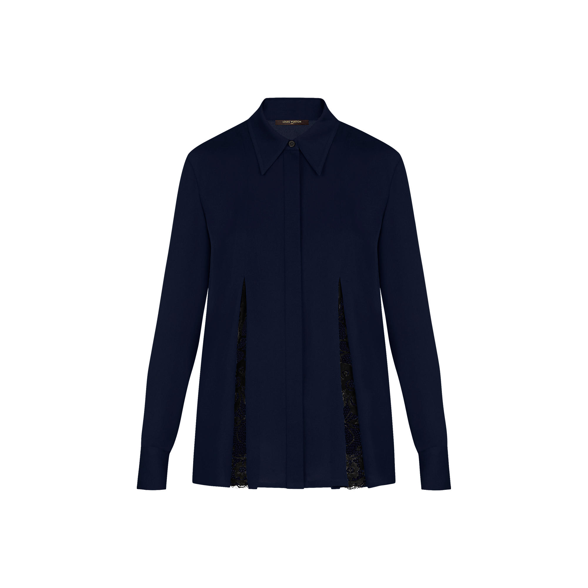Light and feminine, this blouse in silk twill is embellished with black lace inserts that reflect the season’s emblematic lingerie theme. Featuring a textured finish, it buttons up at the front.