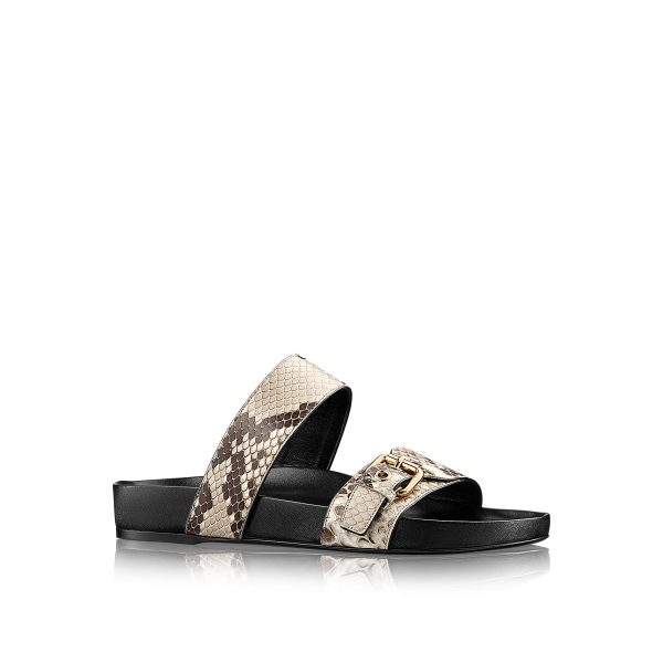 This on-trend flat mule combines the luxury of python leather with the ultimate comfort of an anatomic sole.