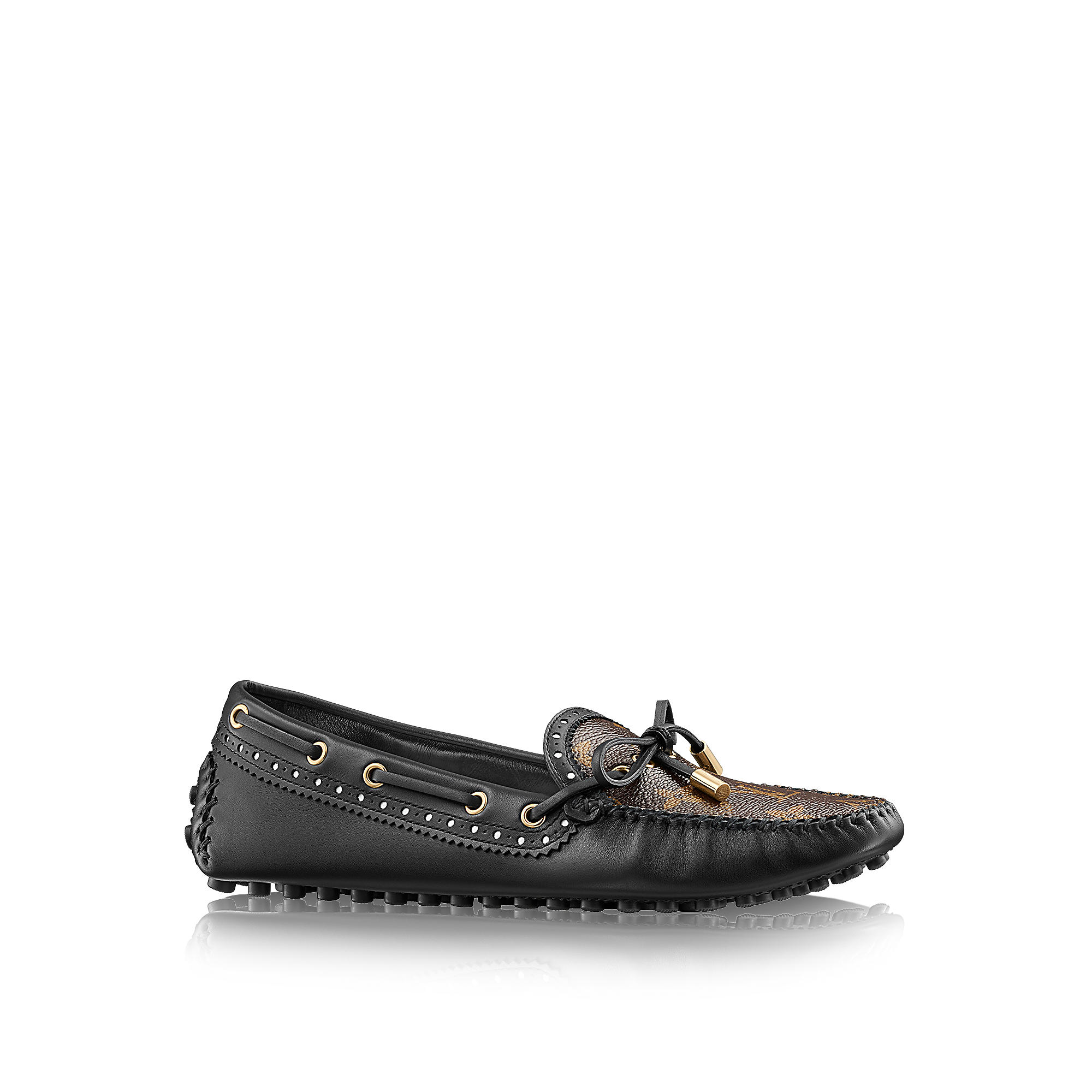 This supple loafer in calf leather and patent Monogram canvas is decorated with two-tone perforations inspired by traditional men’s brogues.