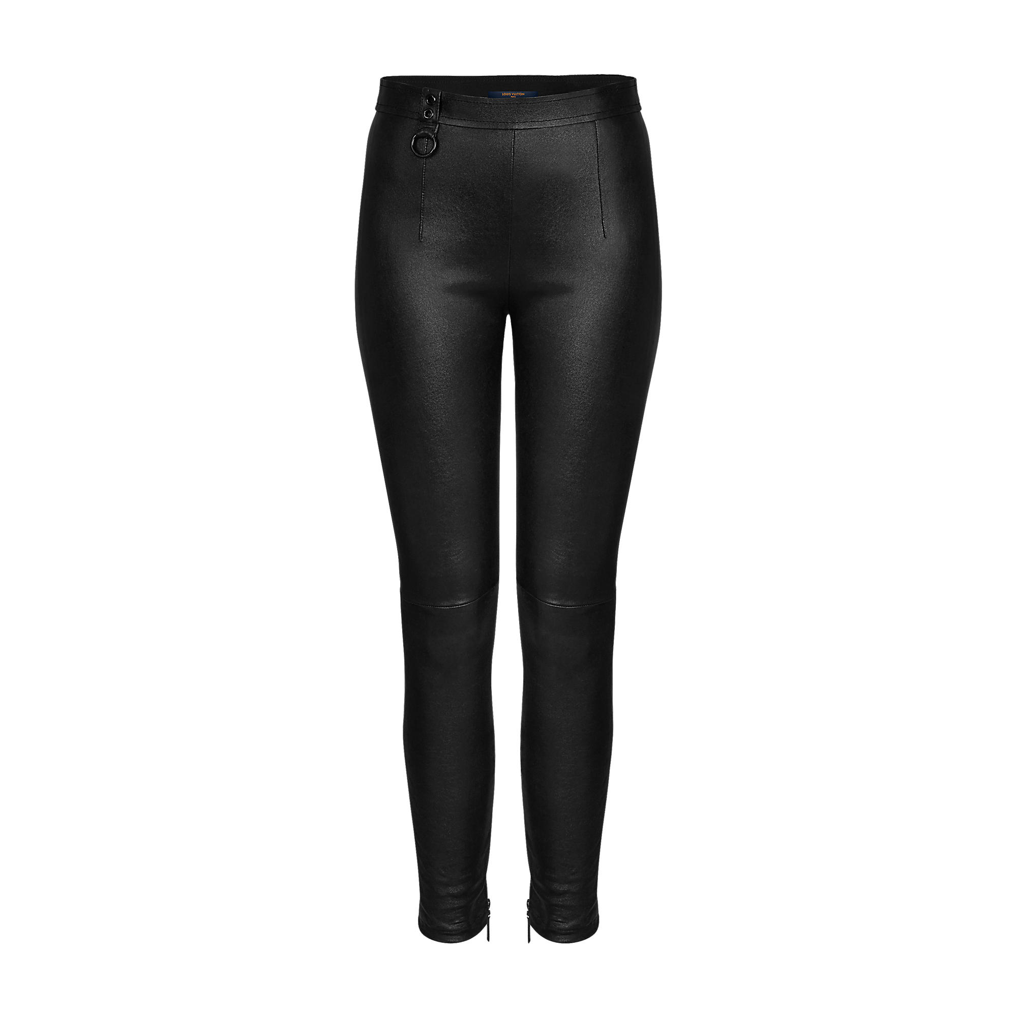 Crafted in stretch lambskin, these iconic Louis Vuitton leggings are styled with a sleek, fitted shape and feature a glossy finish. The V motif is reinterpreted on the waistband as a discrete Louis Vuitton signature.