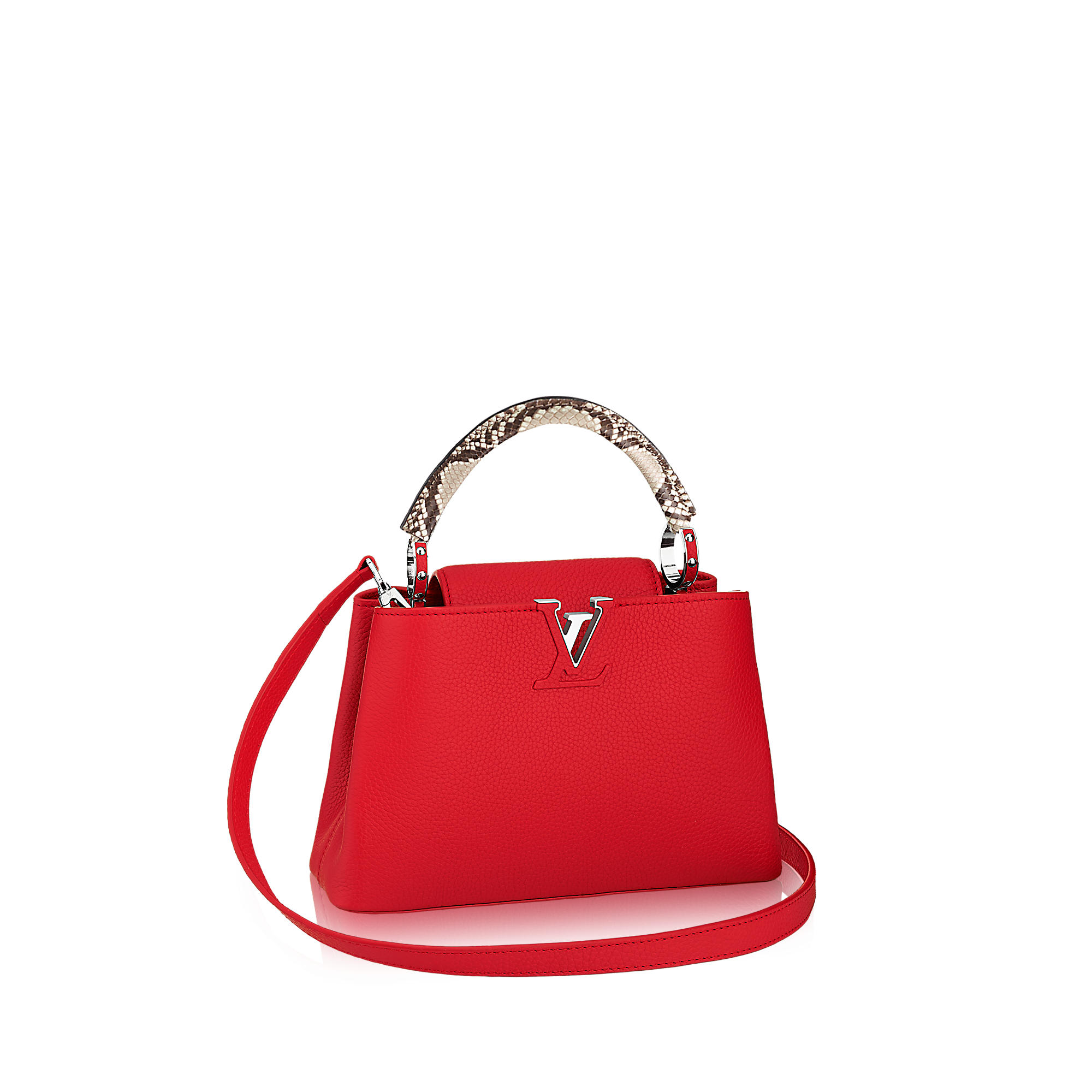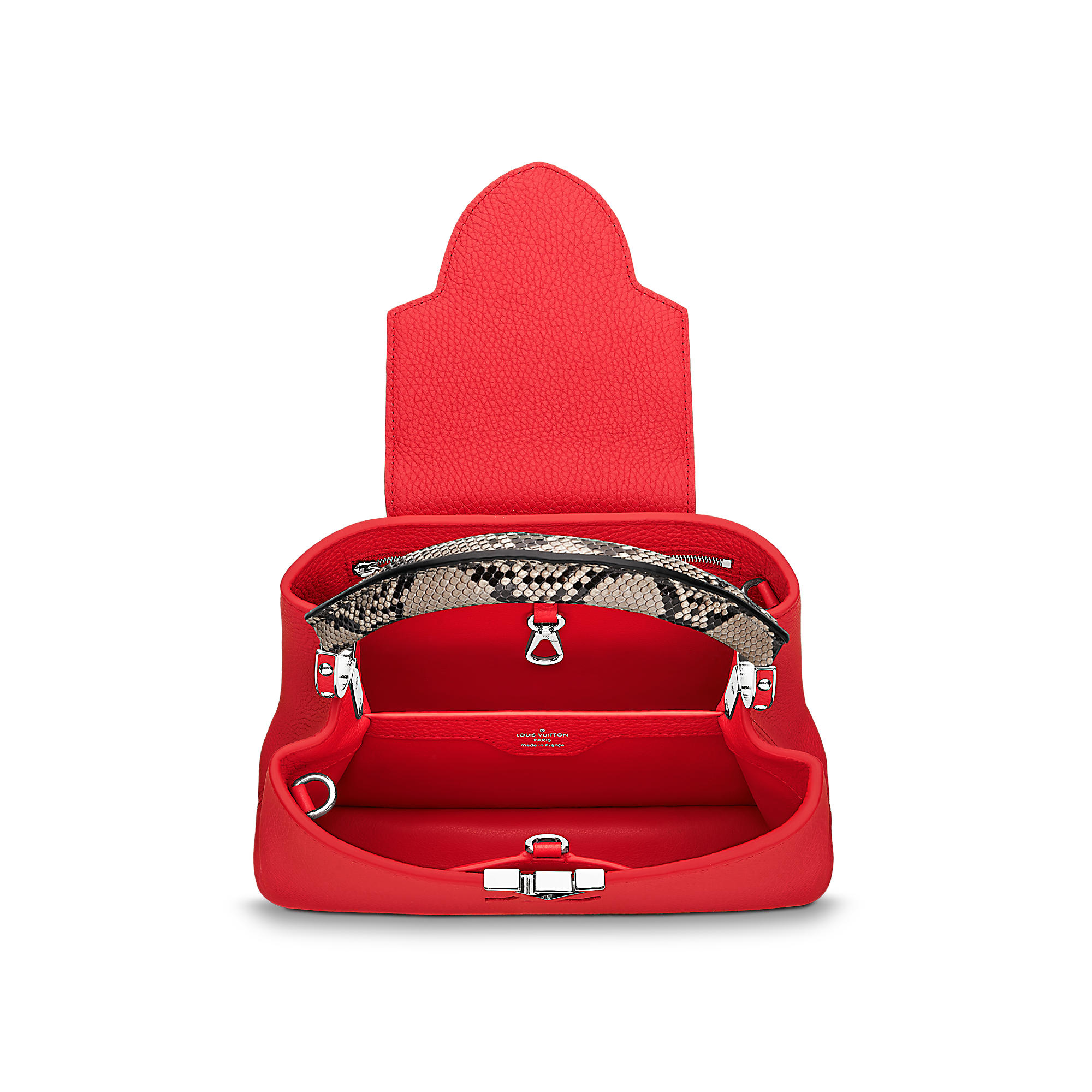 The fashionable mini size of Capucines BB lends an intense pop of contrasting colours to wardrobe styles from classic to daring. The Capucines BB comes with a removable long shoulder strap for casual shoulder or cross-body wear.