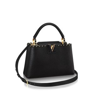 Taking its name from the rue des Capucines in Paris, where Louis Vuitton opened his first store in 1854, the Capucines bag is a testament to exceptional leather craftsmanship. In rare and precious crocodile skin, it combines refined details, including a semi-rigid handle secured by jewel-like rings, with a spacious, functional shape. Its distinctive flap can be worn in two ways: outside to reveal the outline of a Monogram flower, or inside to show the LV initials.