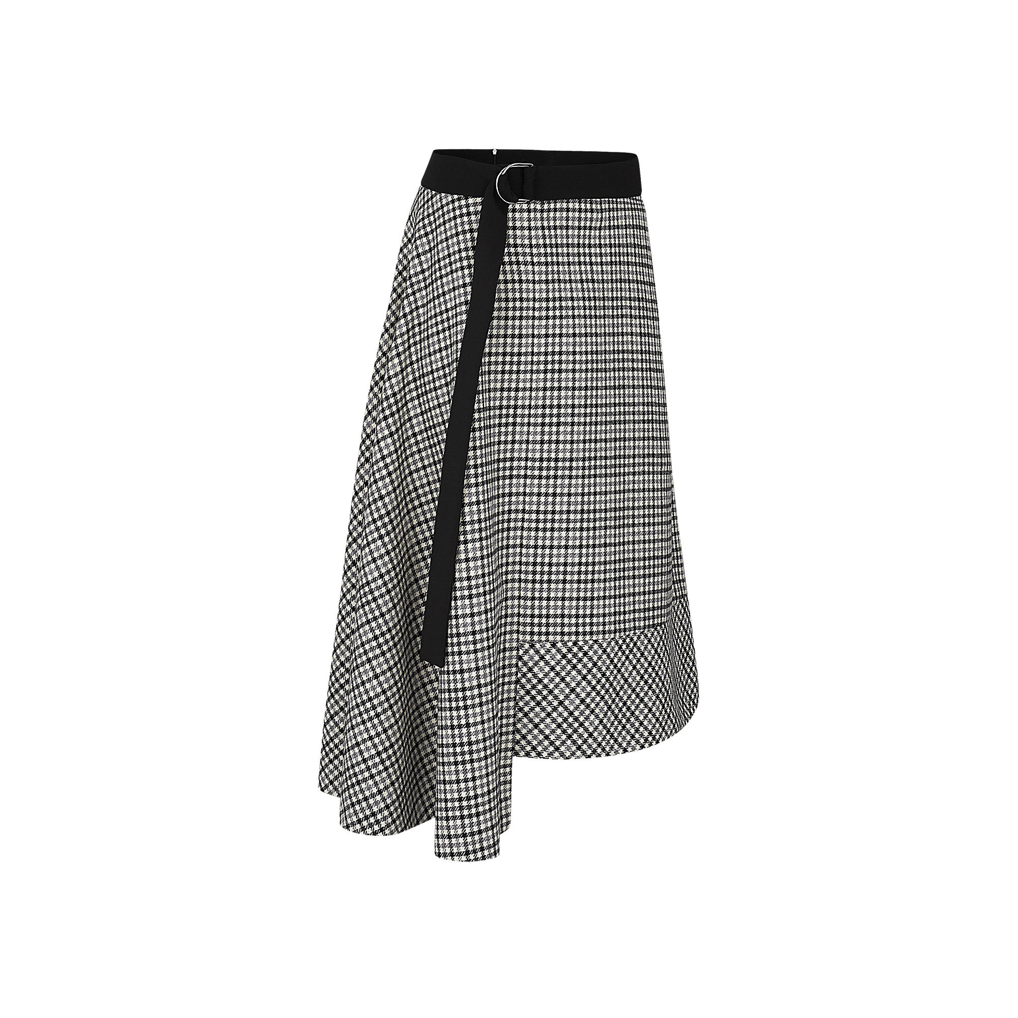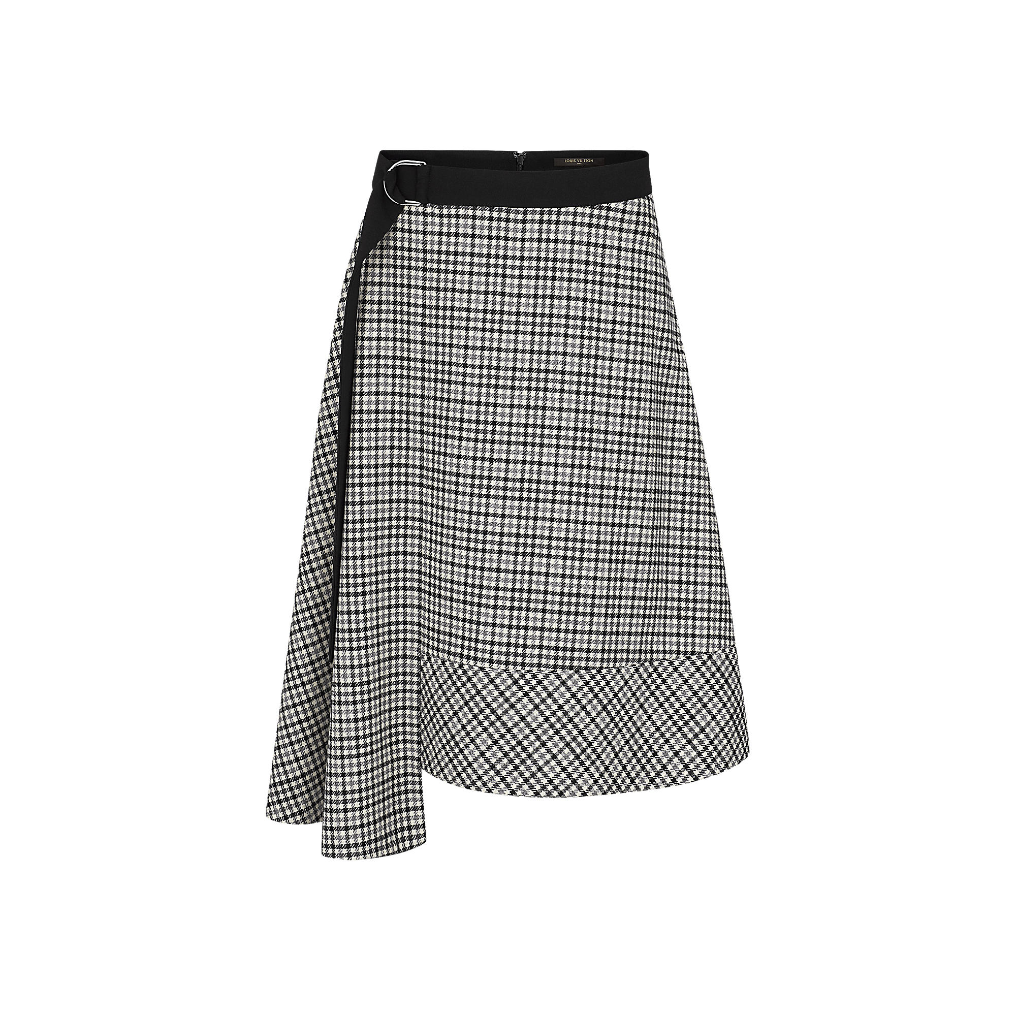 Tailored from a luxurious wool and cashmere blend, this knee-length skirt features a loose, fluid and asymmetric cut. The masculine fabric is one of the season’s signatures, while the contrasting belt fastens with a double D-ring.