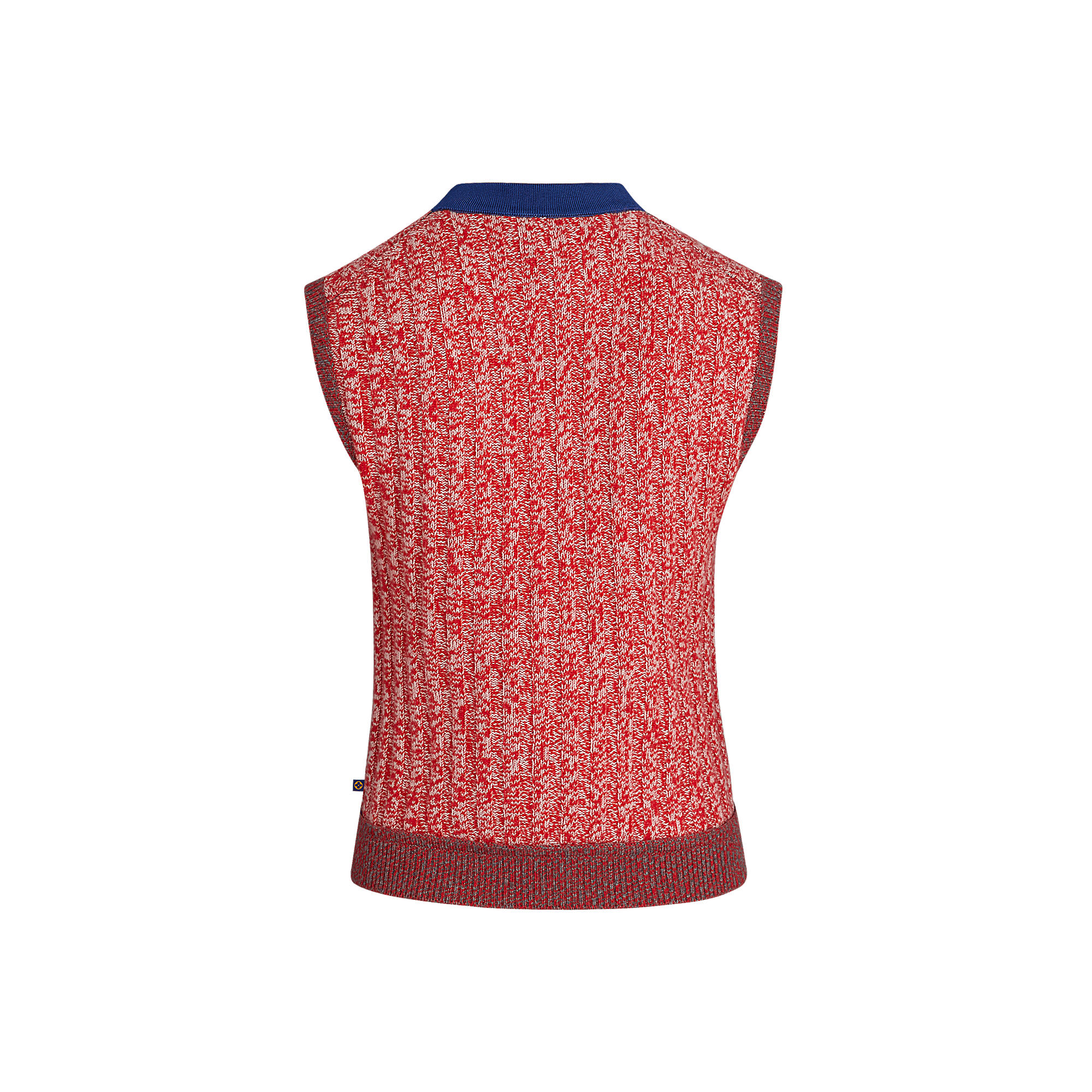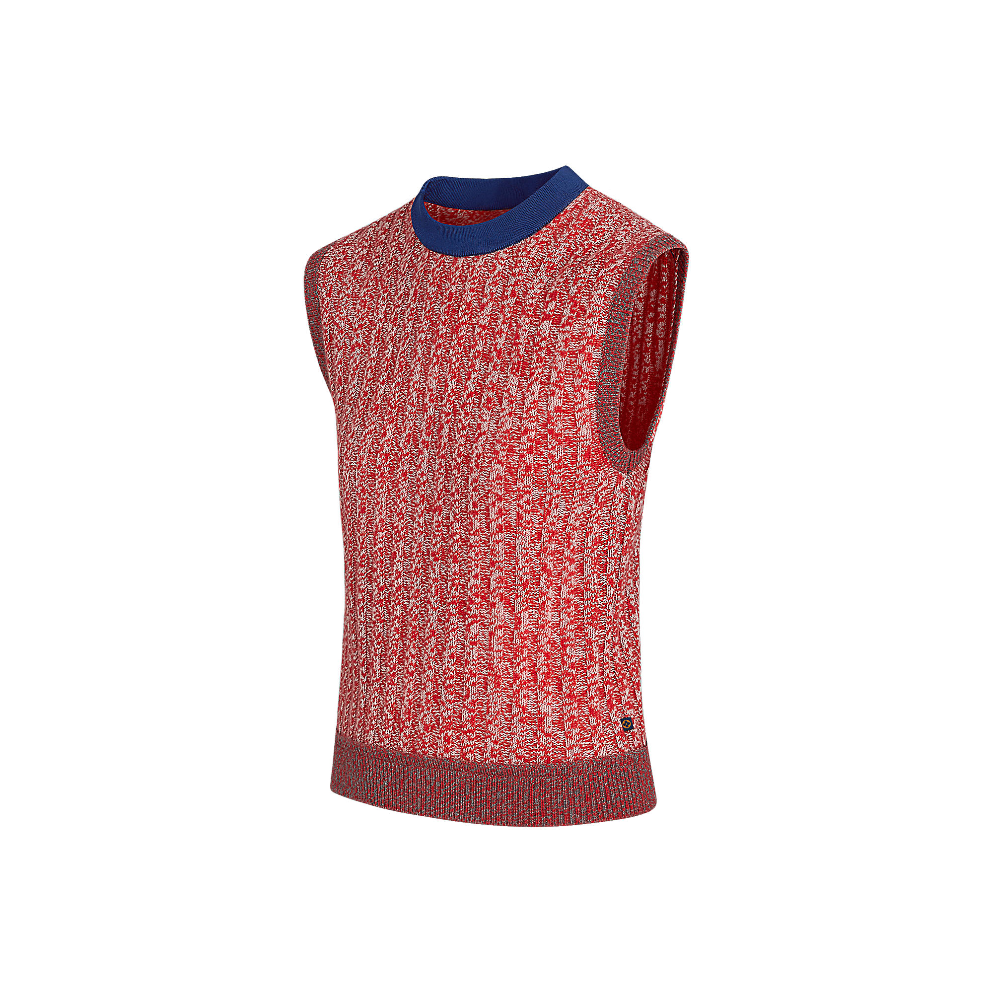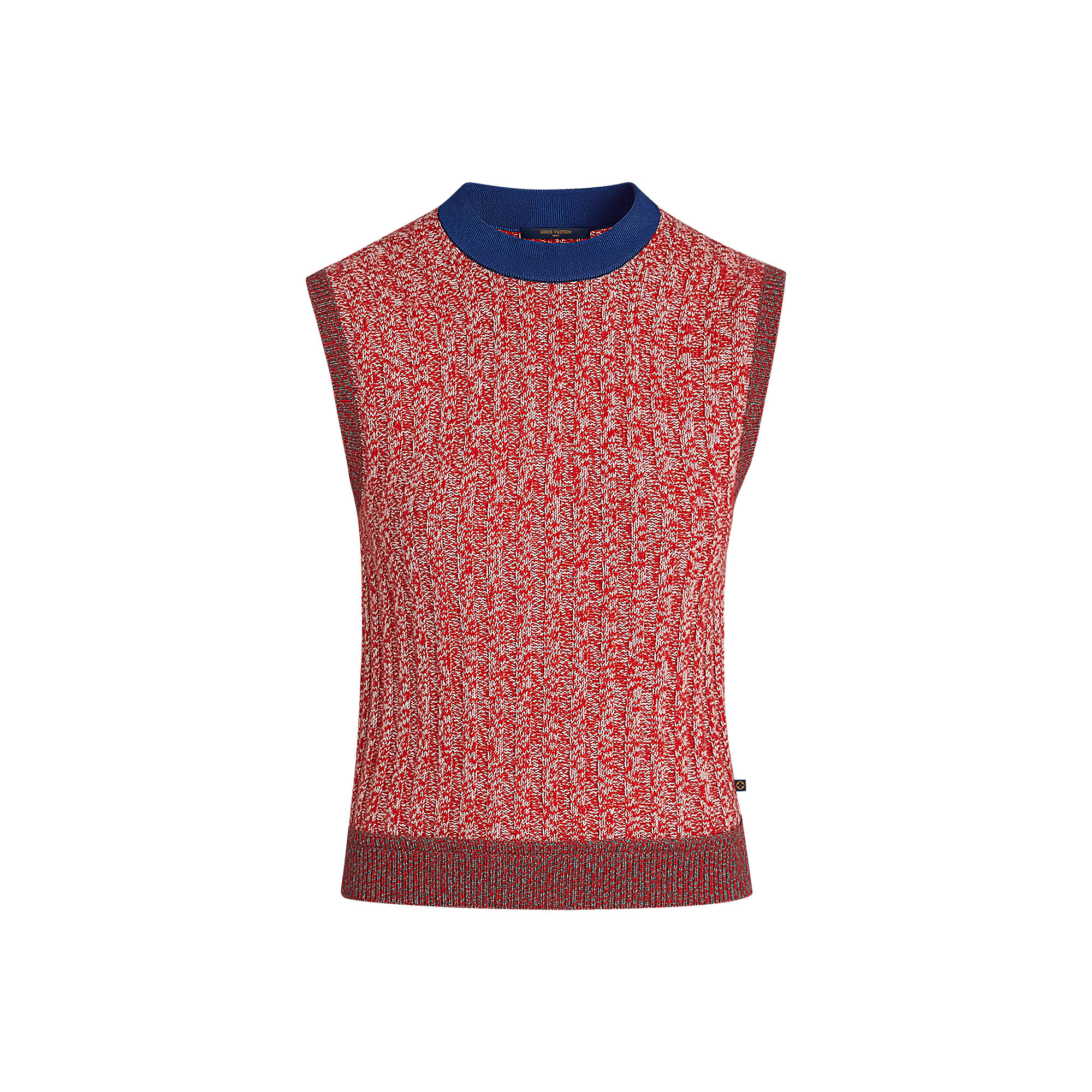 This sleeveless sweater is spun from a soft and weighty blend of cashmere and silk. A strong graphic effect is achieved with a neck rimmed in brightly-coloured silk and a monochrome hem that contrasts with the top’s multicoloured weave.