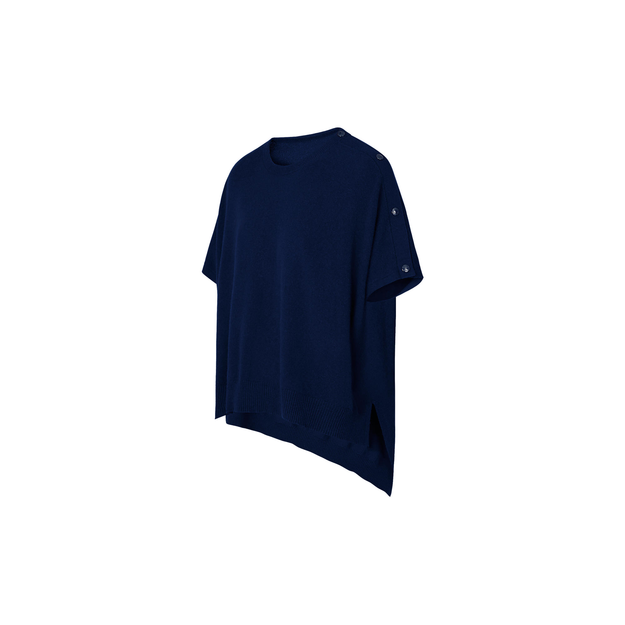 This oversize sweater is woven in soft cashmere and brings together a cape style and press stud details. It has an enveloping fit that makes it perfect for travelling and casual wear.