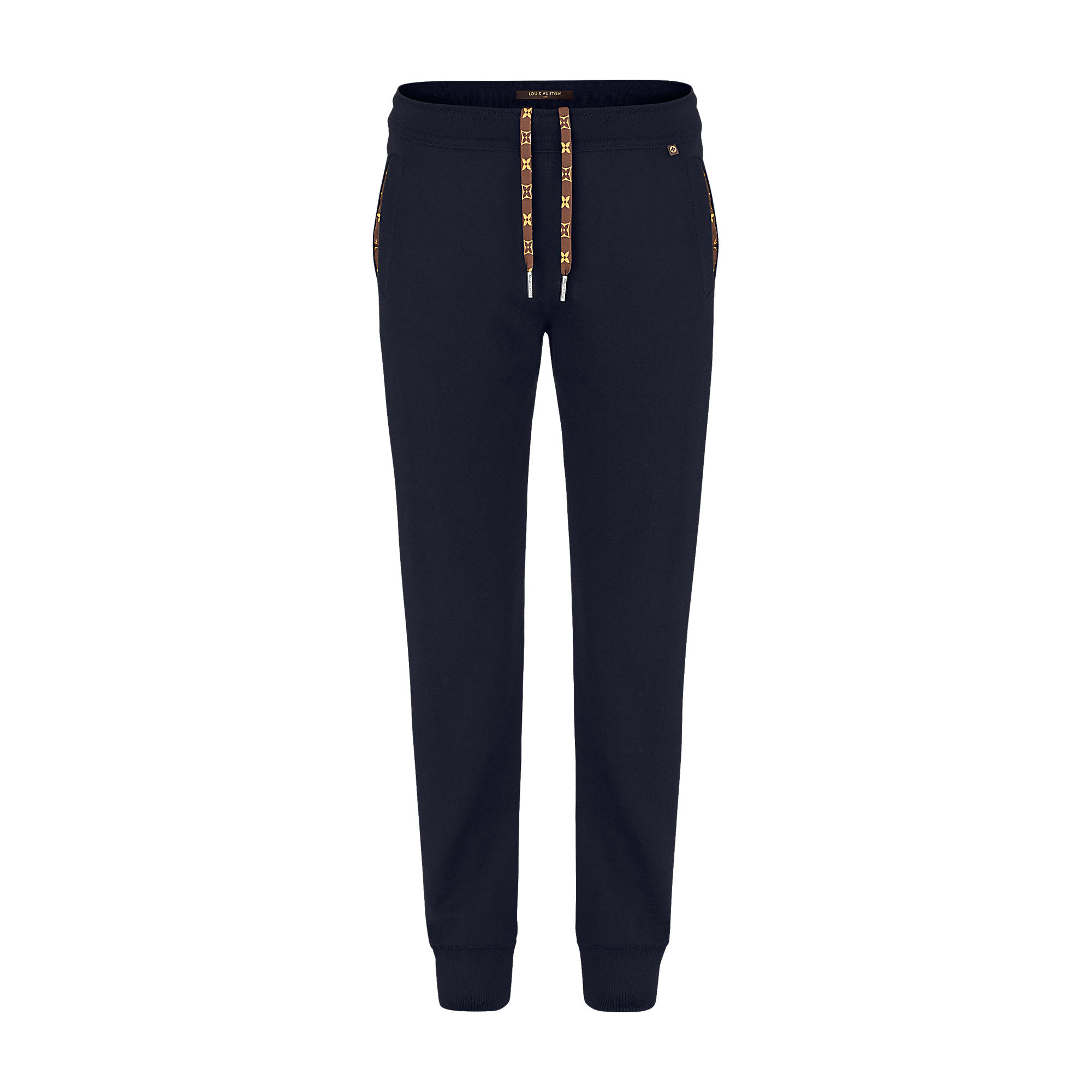 Ideal for traveling, these cashmere pants are both stylish and casual with an elastic waistband and a tighter fit around the ankles. Monogram-lined pockets and a Monogram flower tag add a signature touch.