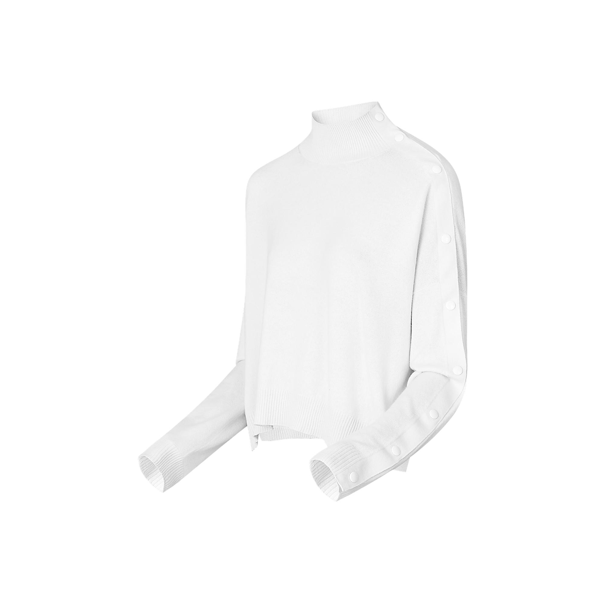 Crafted from soft cashmere, this turtleneck sweater has an oversized silhouette. Lacquered snap buttons – a key signature detail this season – line the left sleeve, giving the piece added versatility.