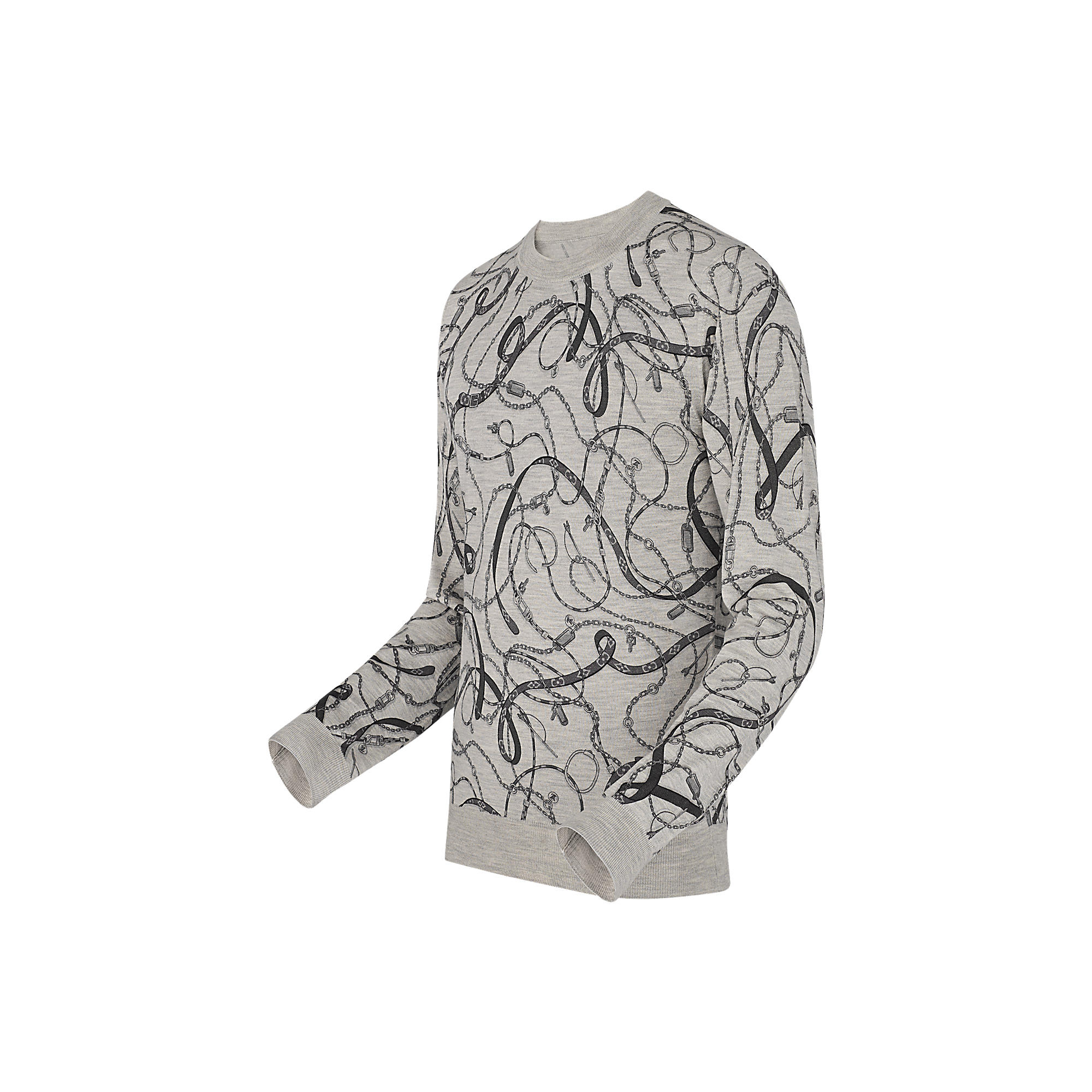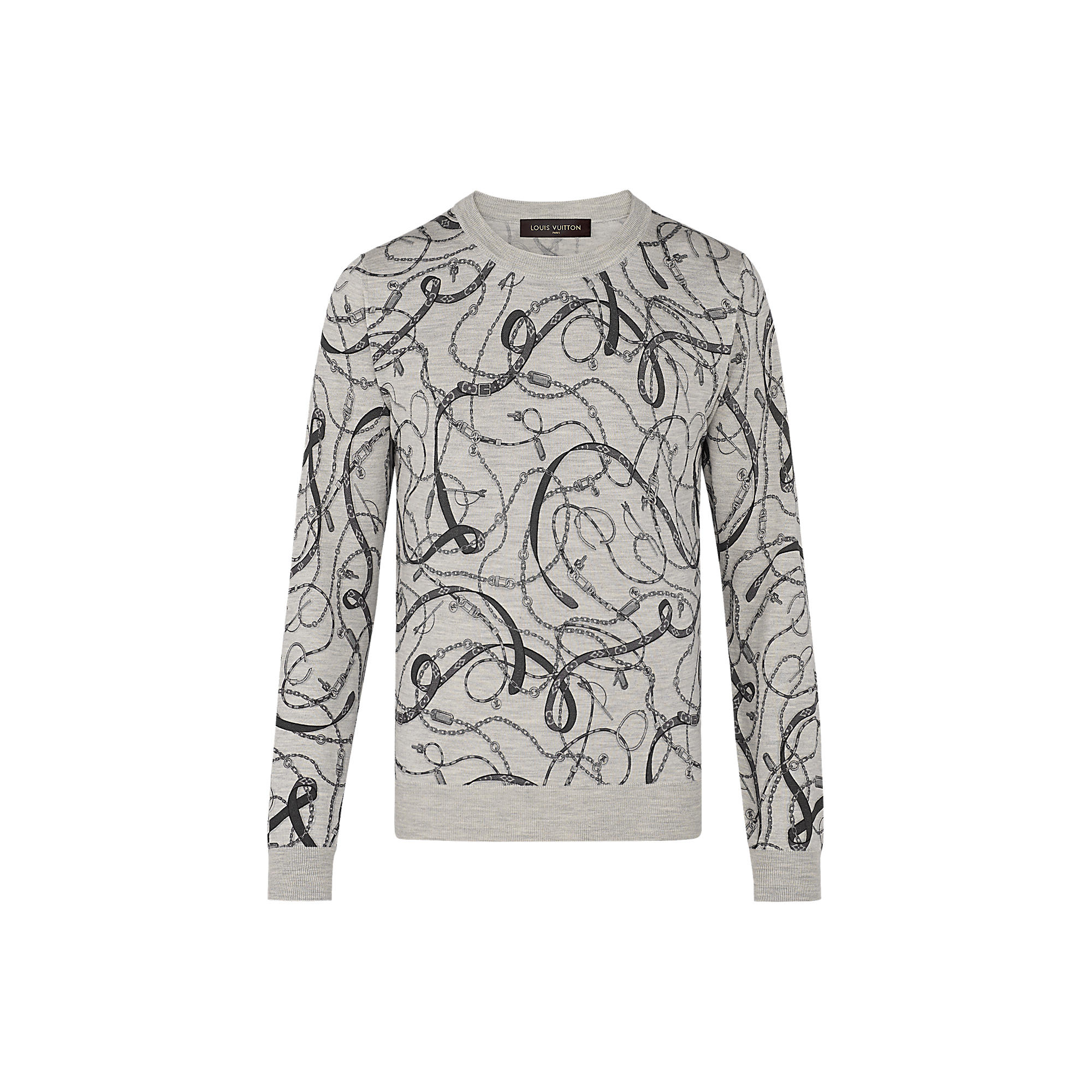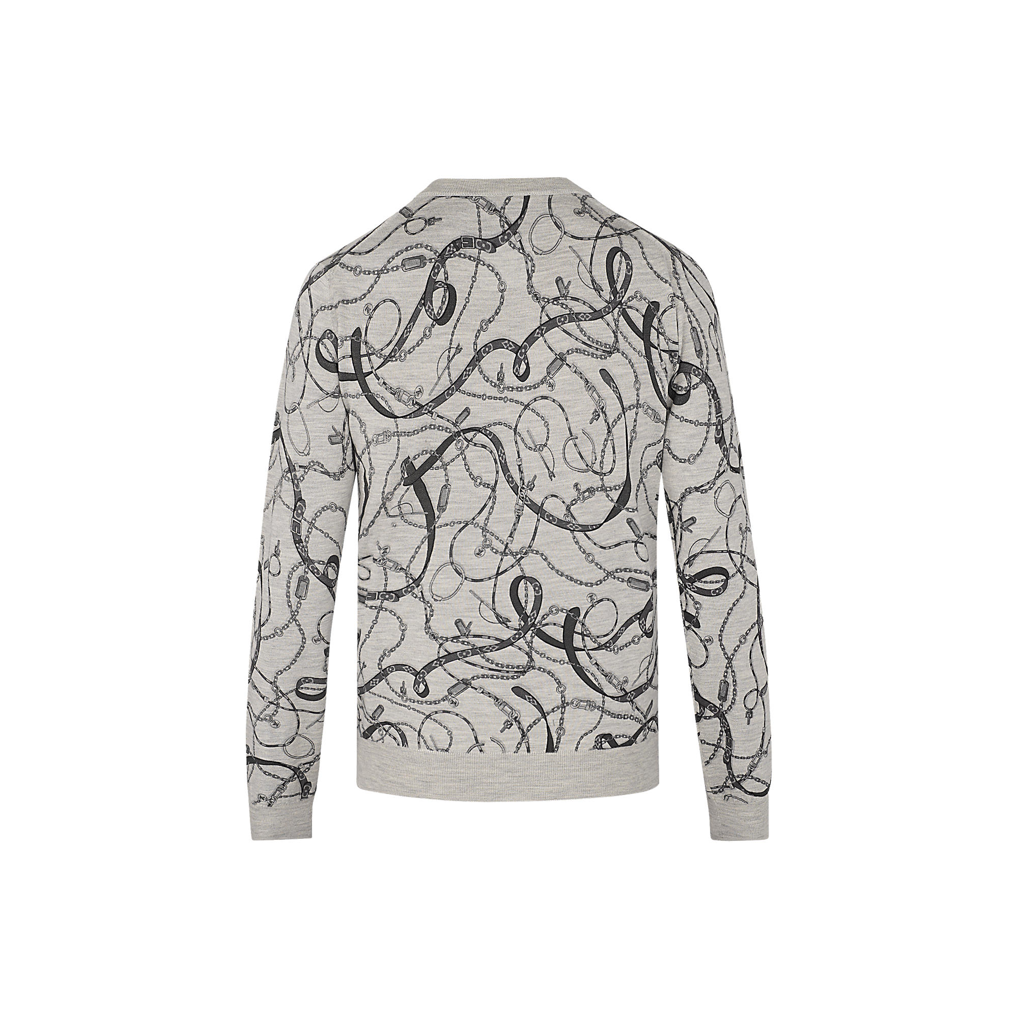 Crafted from a blend of wool and silk, this classic crewneck features the season’s emblematic chain print – depicting a selection of jewelry from previous shows – as an all-over motif.