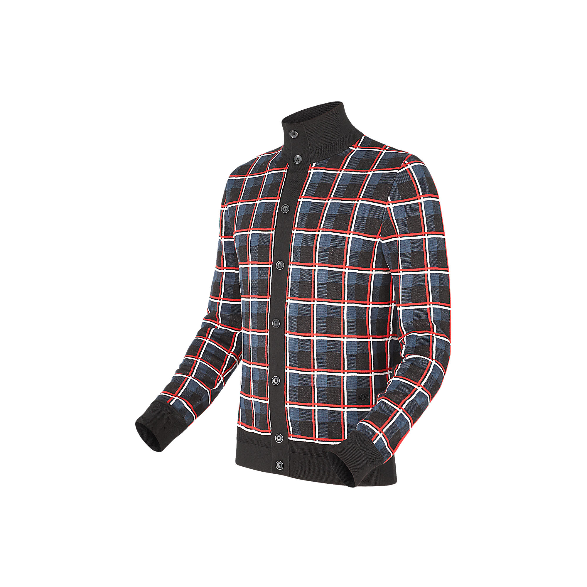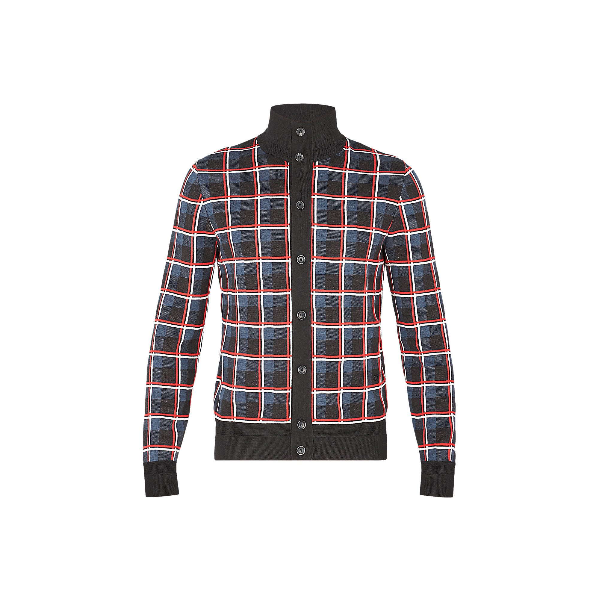 A buttoned cardigan featuring this season’s iconic check motif, crafted from a four-colour wool and cotton blend jacquard. A matt LV medallion at the side adds a discrete touch of branding.
