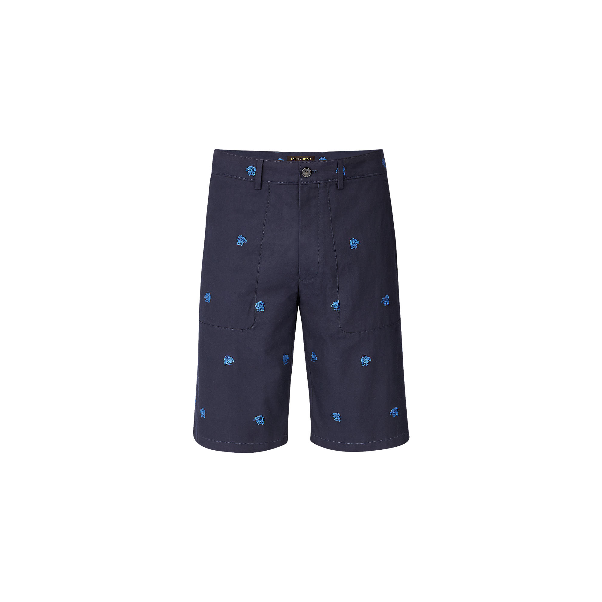 A fresh and summery piece tailored from a fil coupé cotton fabric, adorned with this season’s Chapman brothers elephant design as a contrasted micro motif. Inserted front pockets complete the effect.