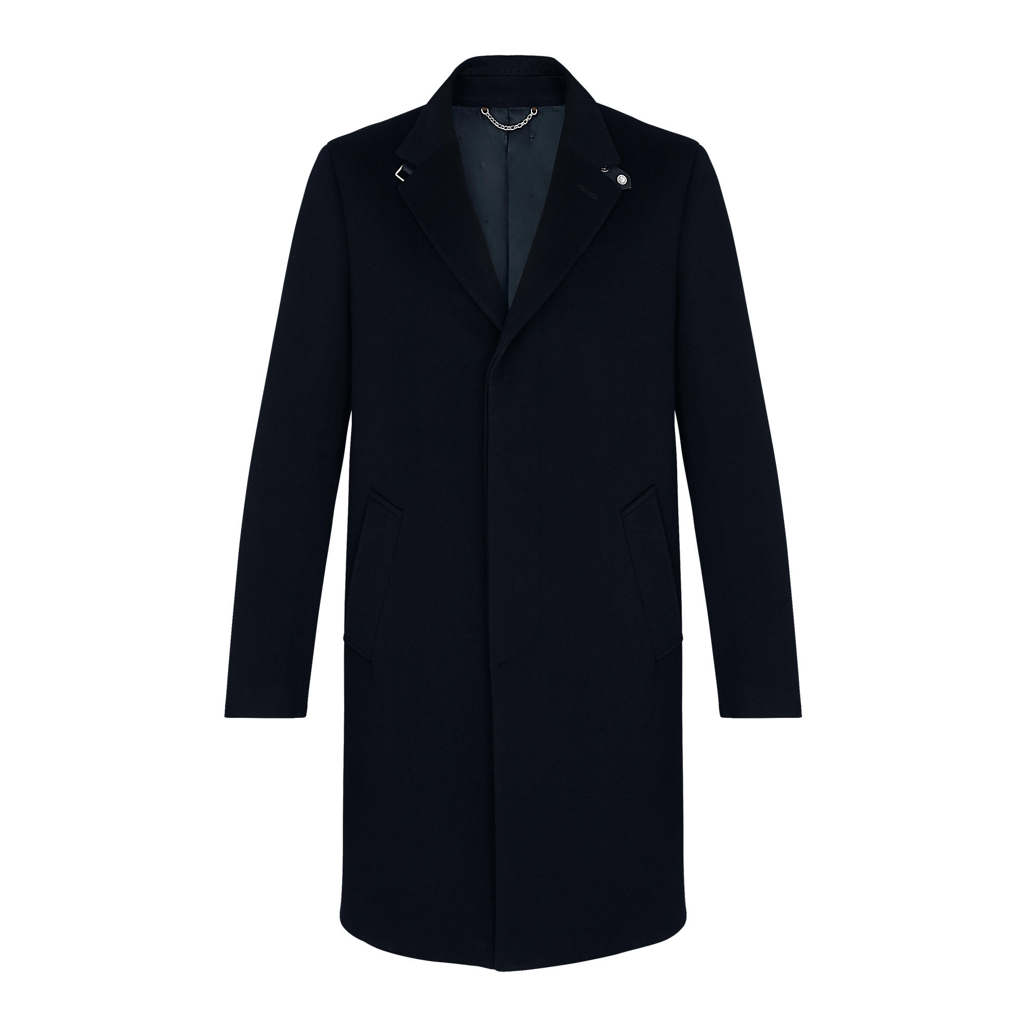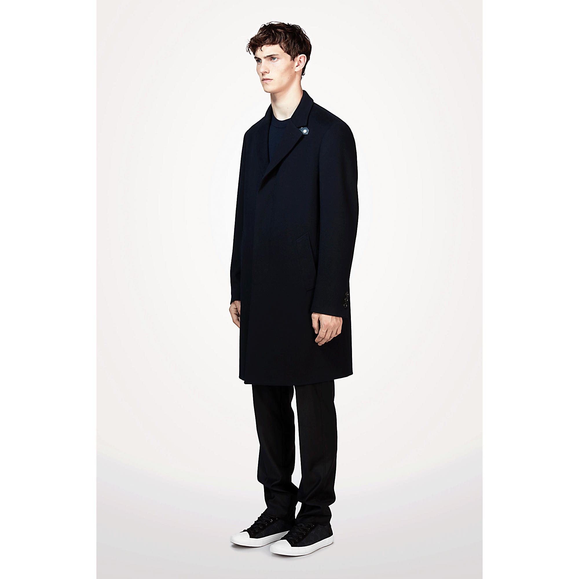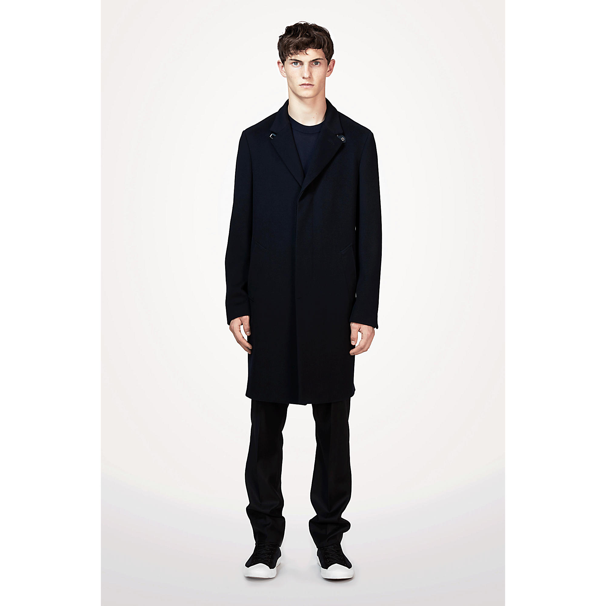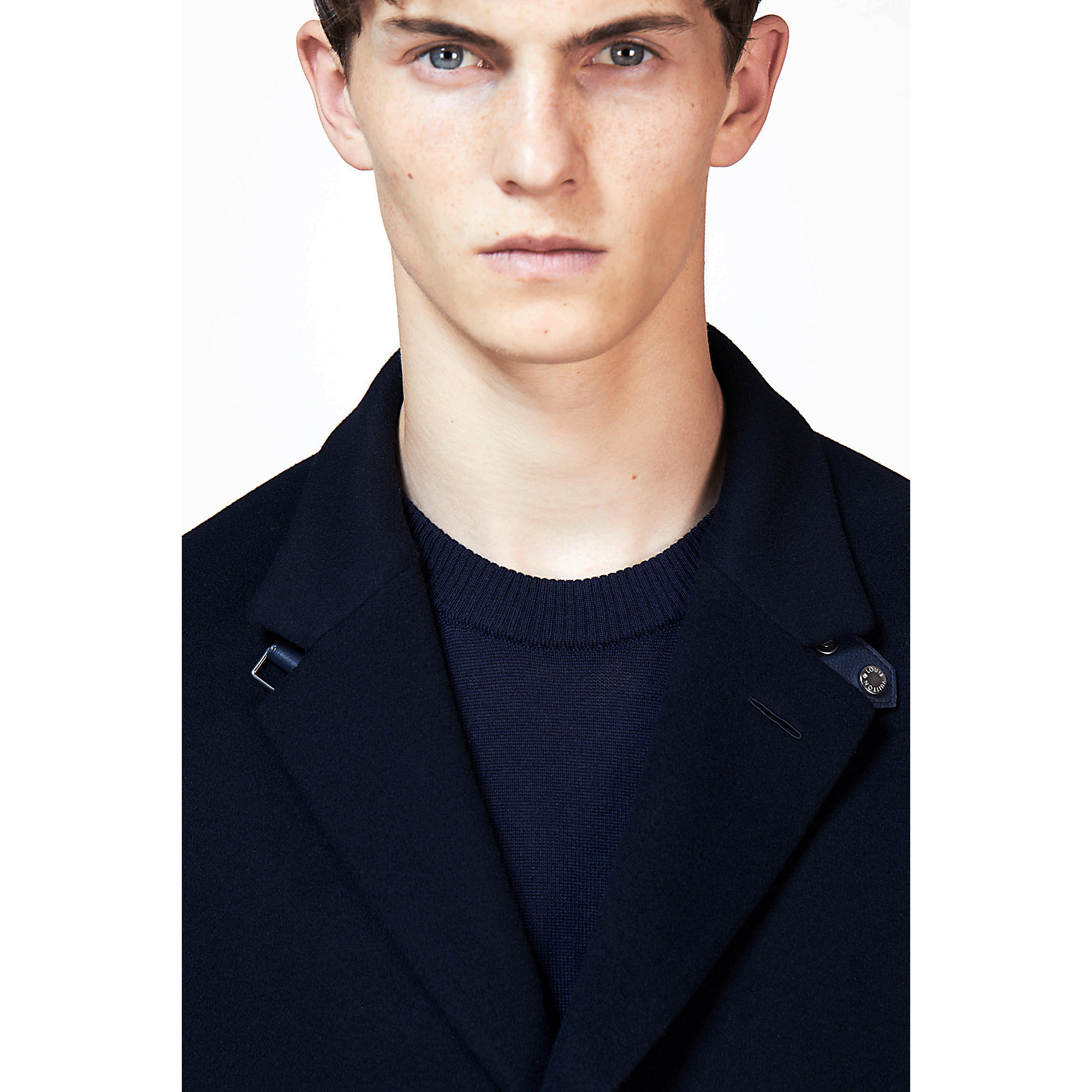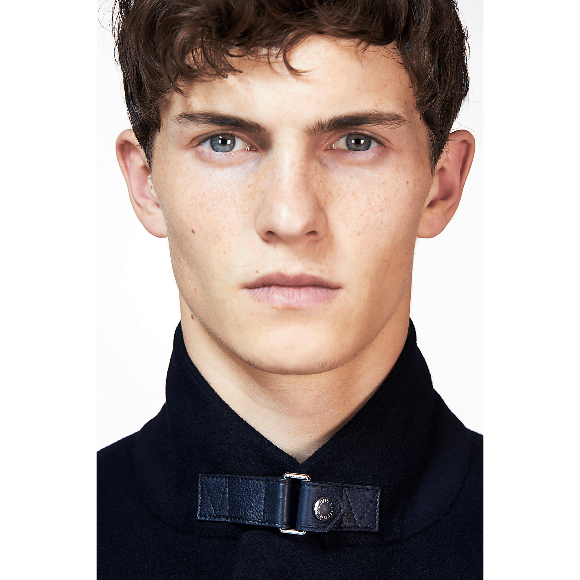 Tailored from technical wool moleskin, this classic coat has a clean and modern look. The collar is twisted with a leather tab, decorated with signature Gaston V stitching.