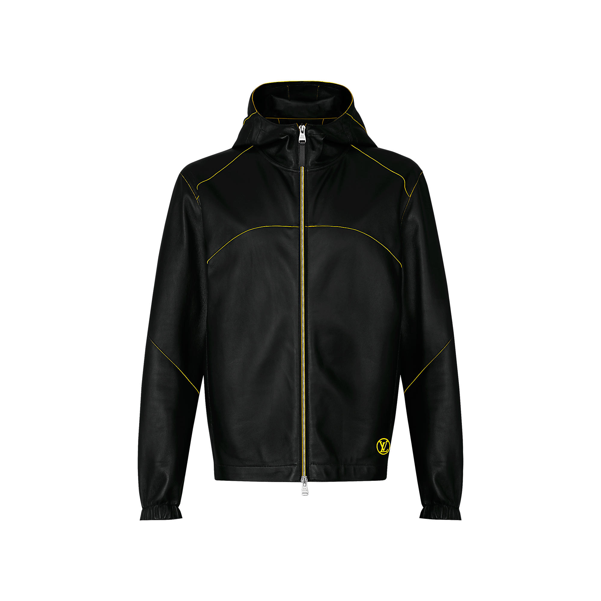 This lambskin blouson continues the collection’s outdoor vibe. Layered leather provides a contrasting coloured edge, with a lasered LV logo completing the effect.
