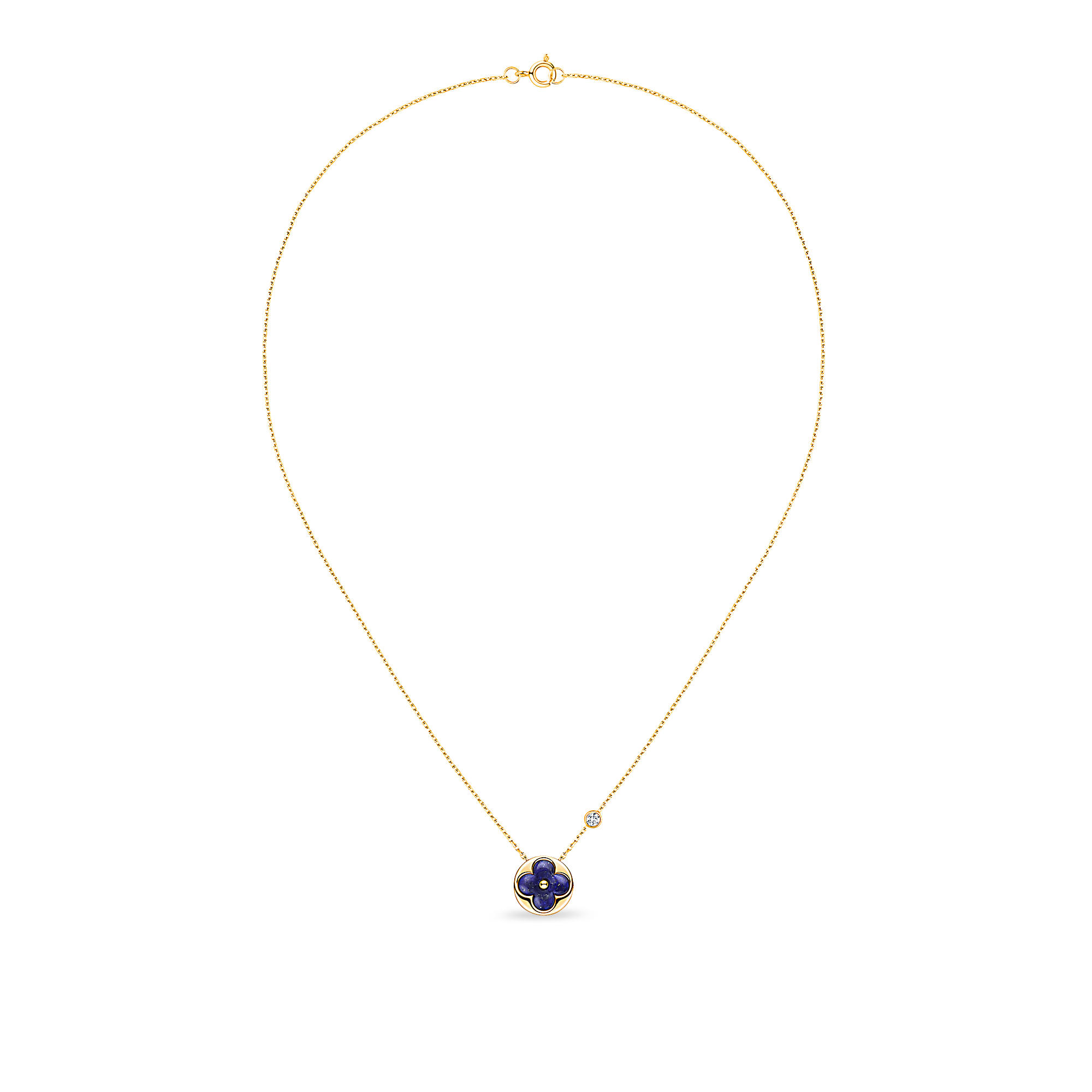 Colour Blossom BB celebrates the Monogram flowers, created in 1896 by Georges-Louis Vuitton. The flower blooms into a small format in carved Lapis Lazuli and is set into yellow gold highlighted by a diamond. Months of work were necessary to perfect the stone’s subtle curves and sparkle.