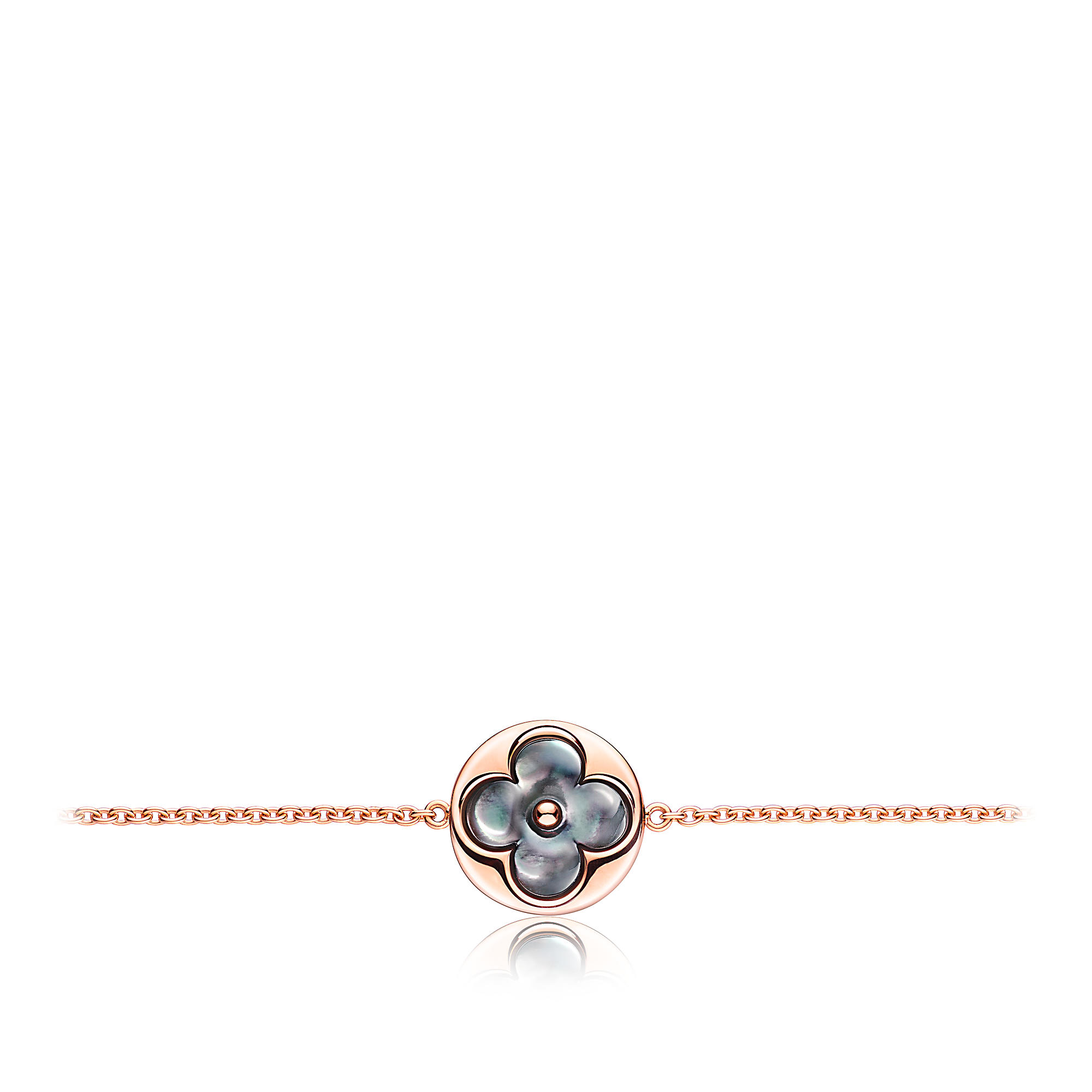 Colour Blossom celebrates the Monogram flowers, created in 1896 by Georges-Louis Vuitton. Set into pink gold, the flower blooms into a carved grey mother-of-pearl. Months of work were necessary to perfect the stone’s subtle curves and sparkle. The dazzling array of jewel creations is an invitation to create your own personal harmony,