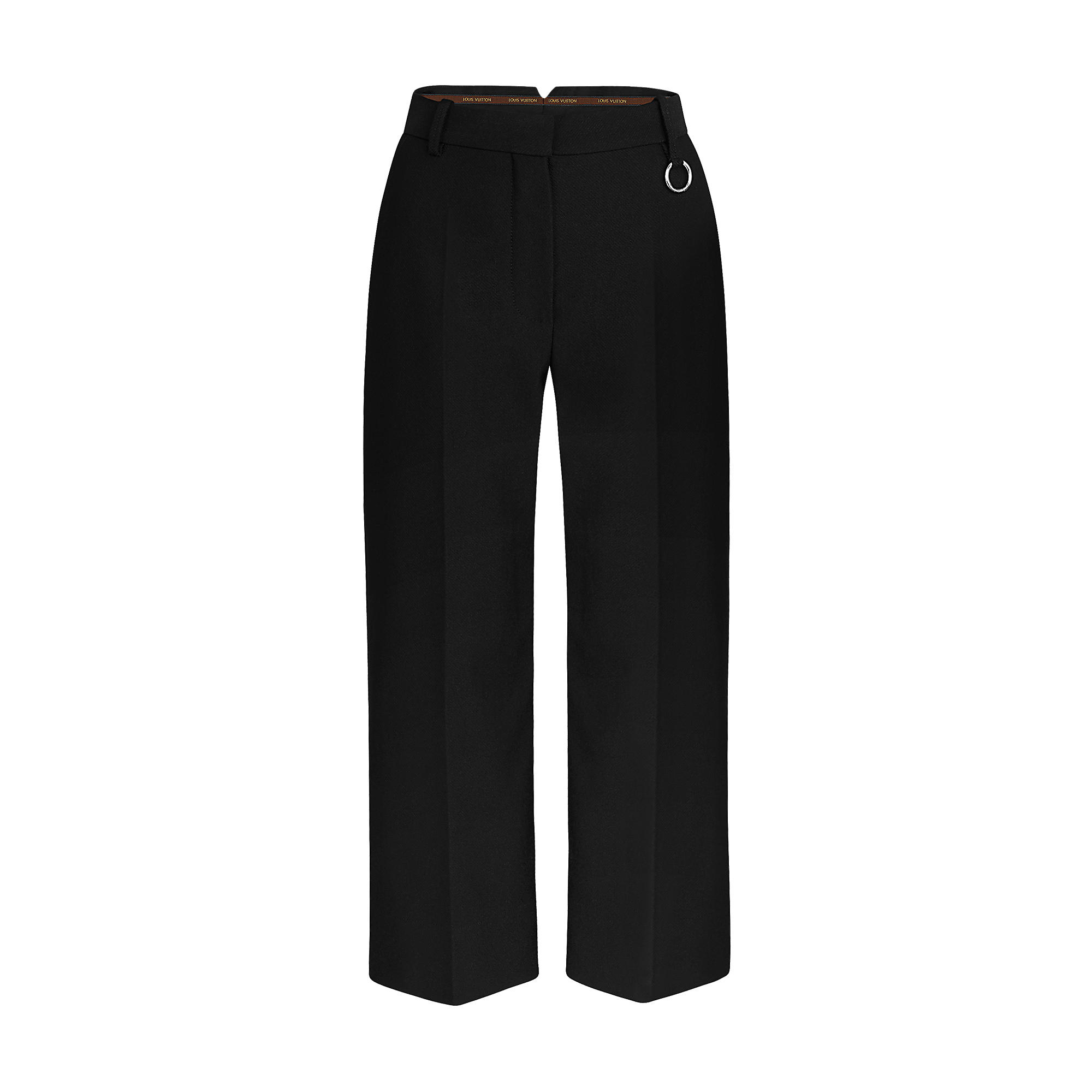 Tailored in cotton with a light satin finish, these cropped pants flare out to create a sleek silhouette. On the belt, a Louis Vuitton palladium ring adds a subtle signature touch.