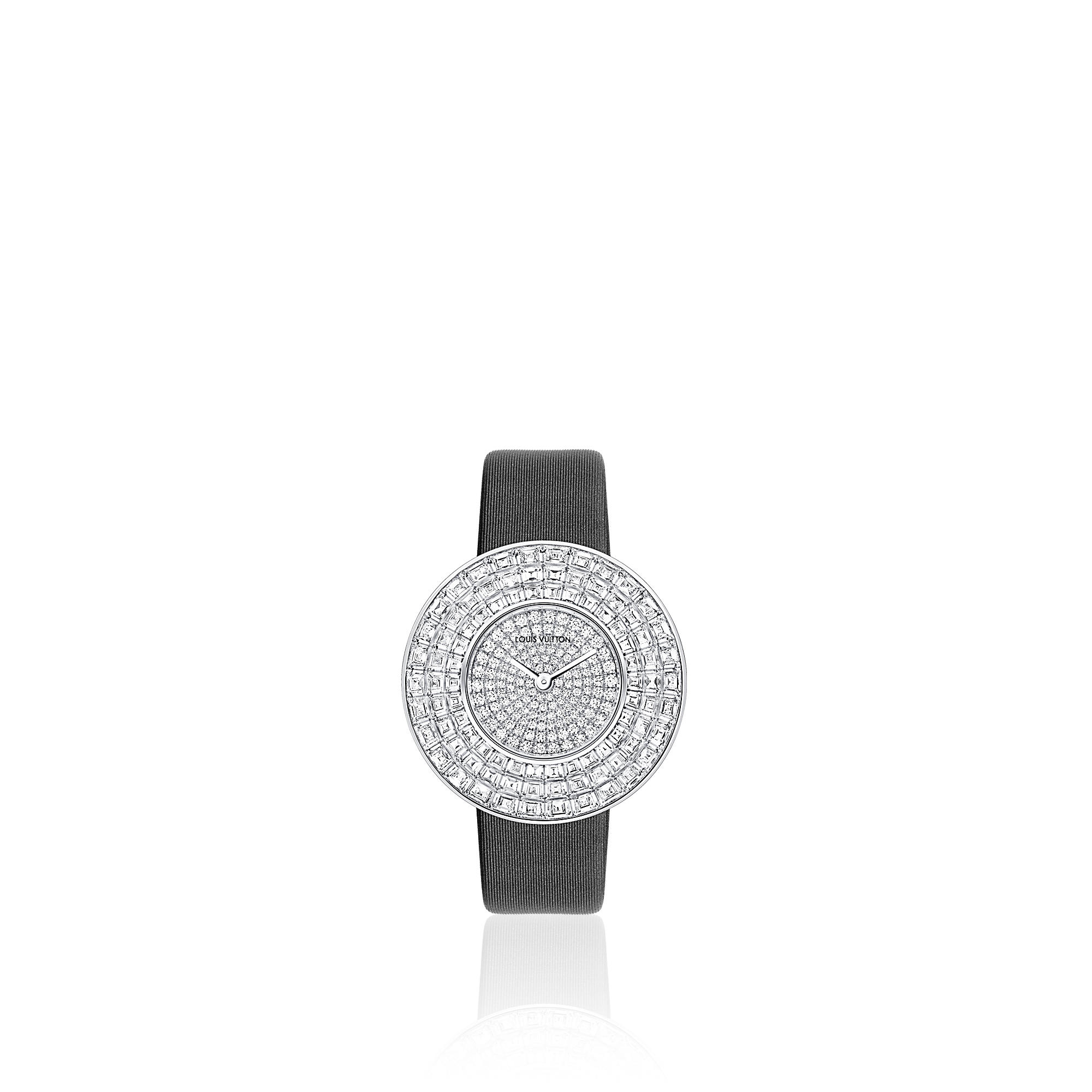 – 18K white gold case set with 232 diamonds, invisible-set diamonds on the bezel