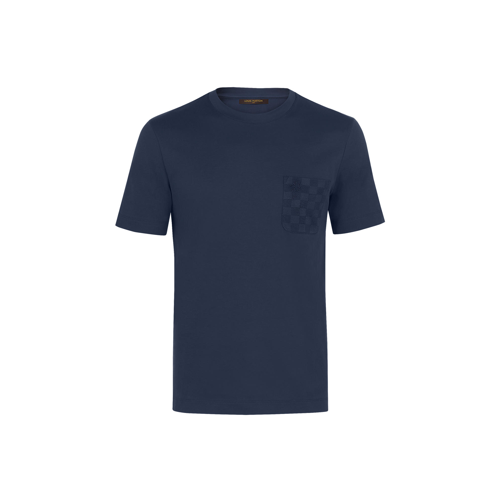 Tailored from a luxurious compact cotton fabric, this classic crewneck t-shirt is signed with a Damier-effect patch pocket on the chest.