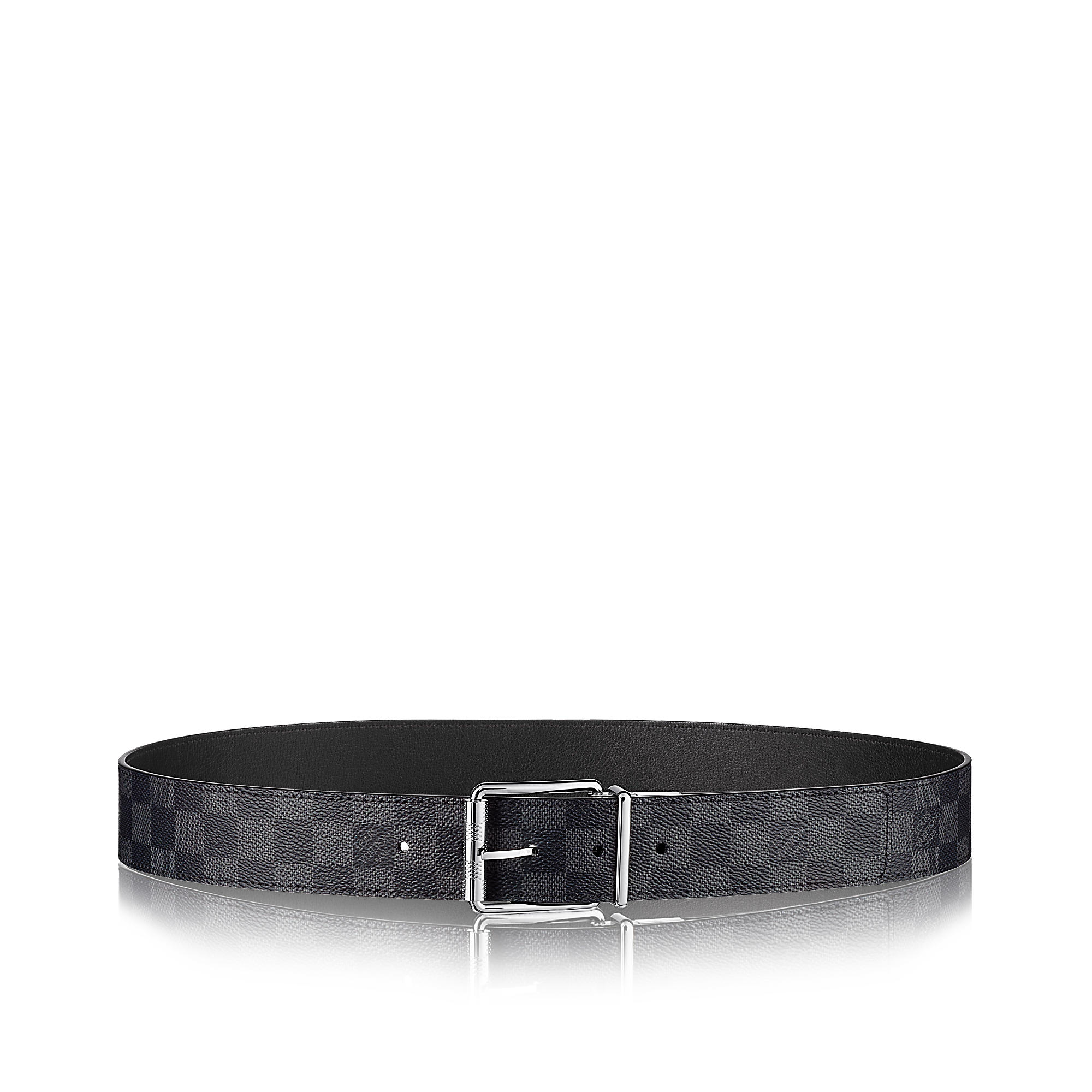 In Damier on one side for casual appeal and a single colour on the other for understated elegance, this versatile belt is the new classic. An ingenious rotating plate makes it easily reversible.