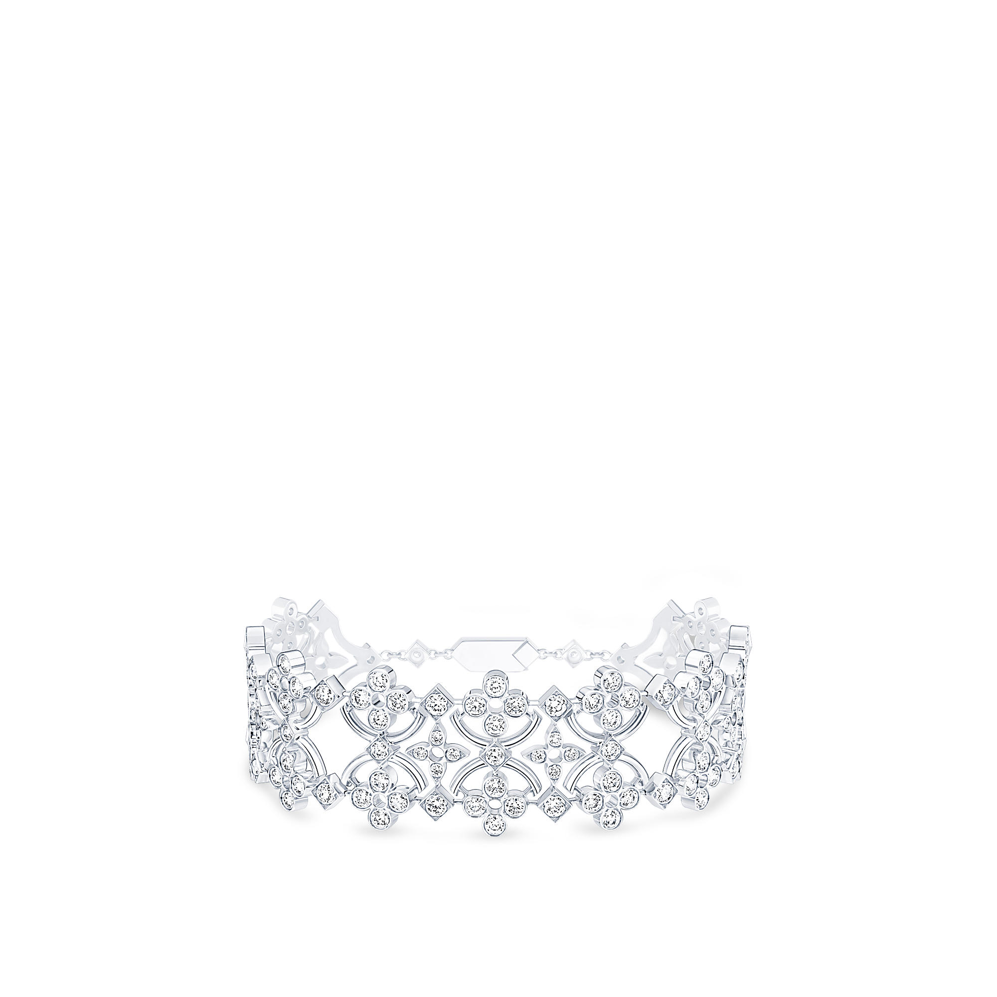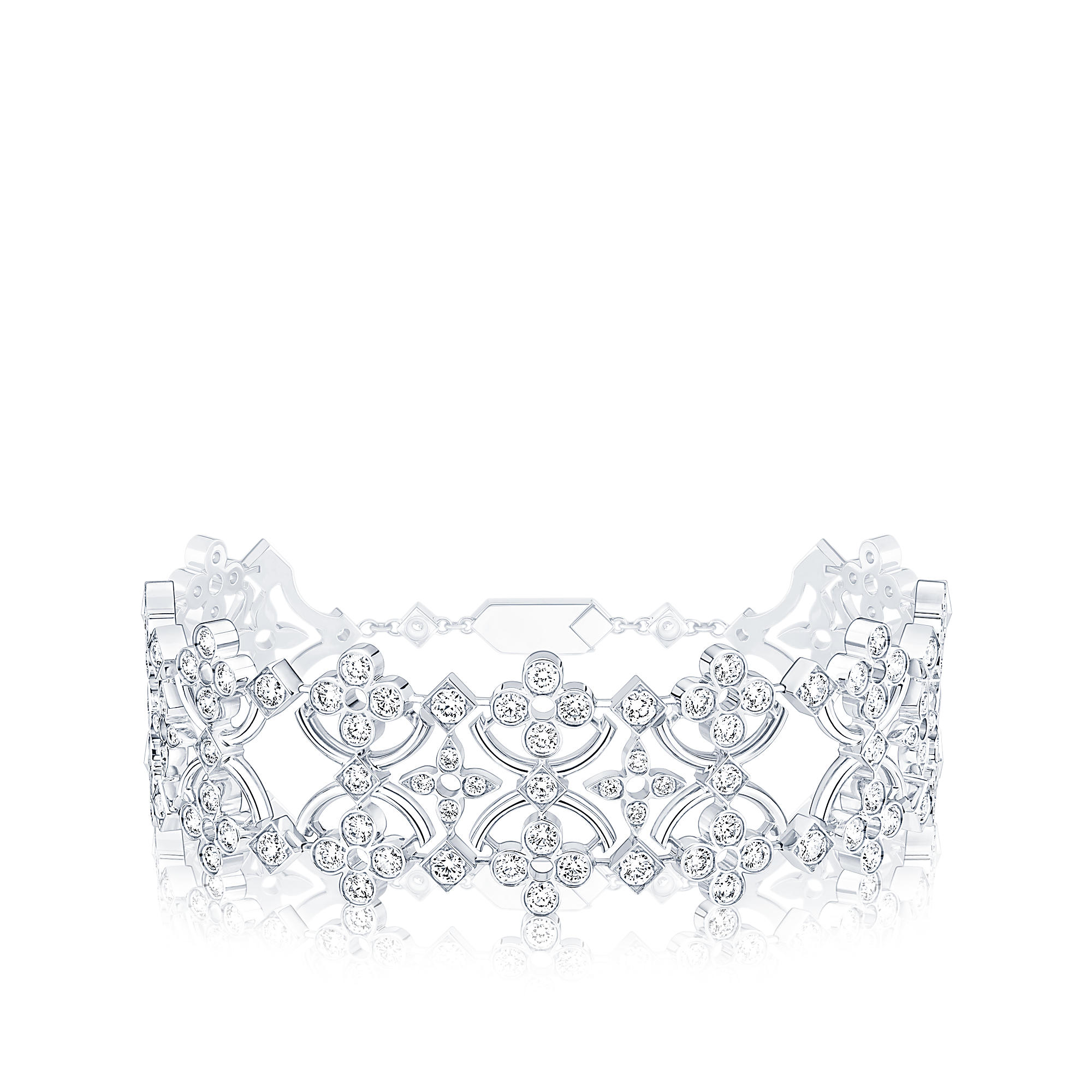 Dentelle de diamants celebrates the Louis Vuitton Monogram flowers. Woven as a delicate diamond lace, this intensely feminine collection inspires from the finest jewelry and couture craftsmanship. Supple as a second skin, these timeless pieces illuminates the silhouette with each movement.