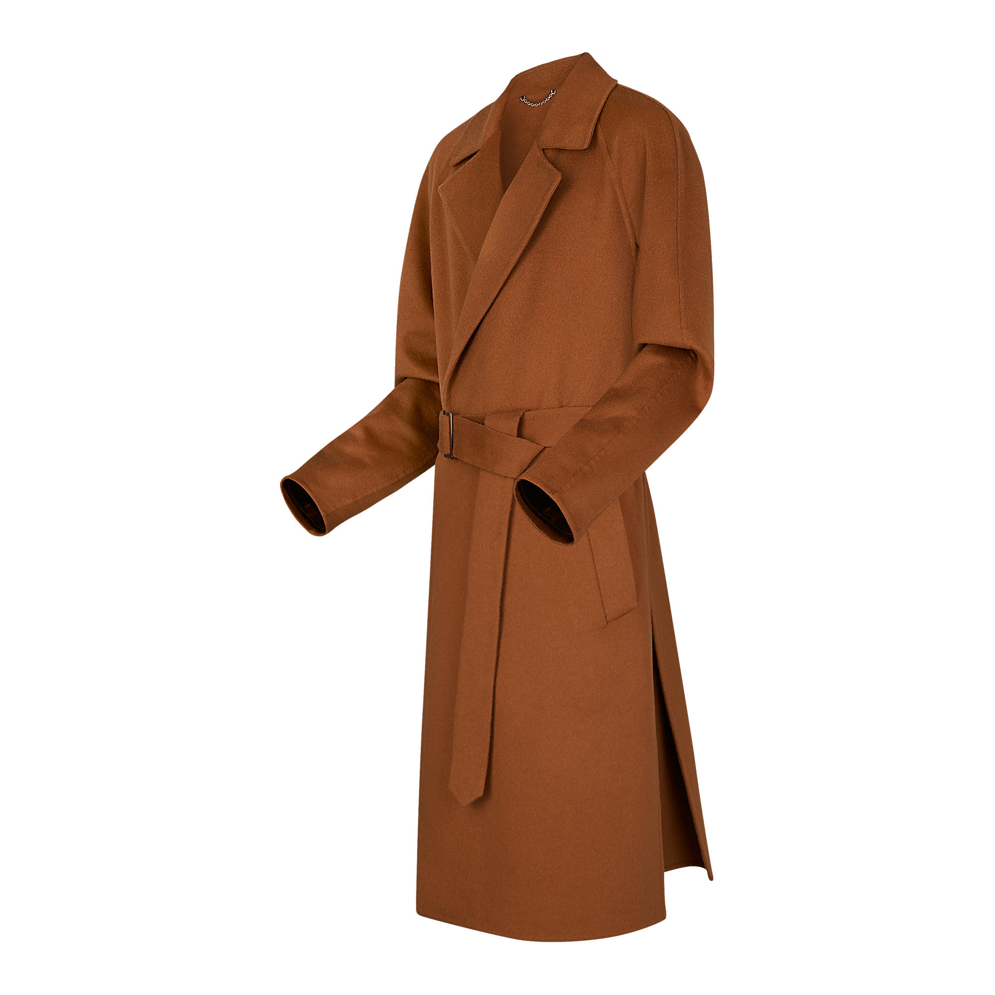 Tailored from luxurious double face cashmere, this loose-fitting belted overcoat encapsulates one of the season’s iconic silhouettes. Raglan sleeves and a raw-cut finish add a distinctive touch of sophistication.