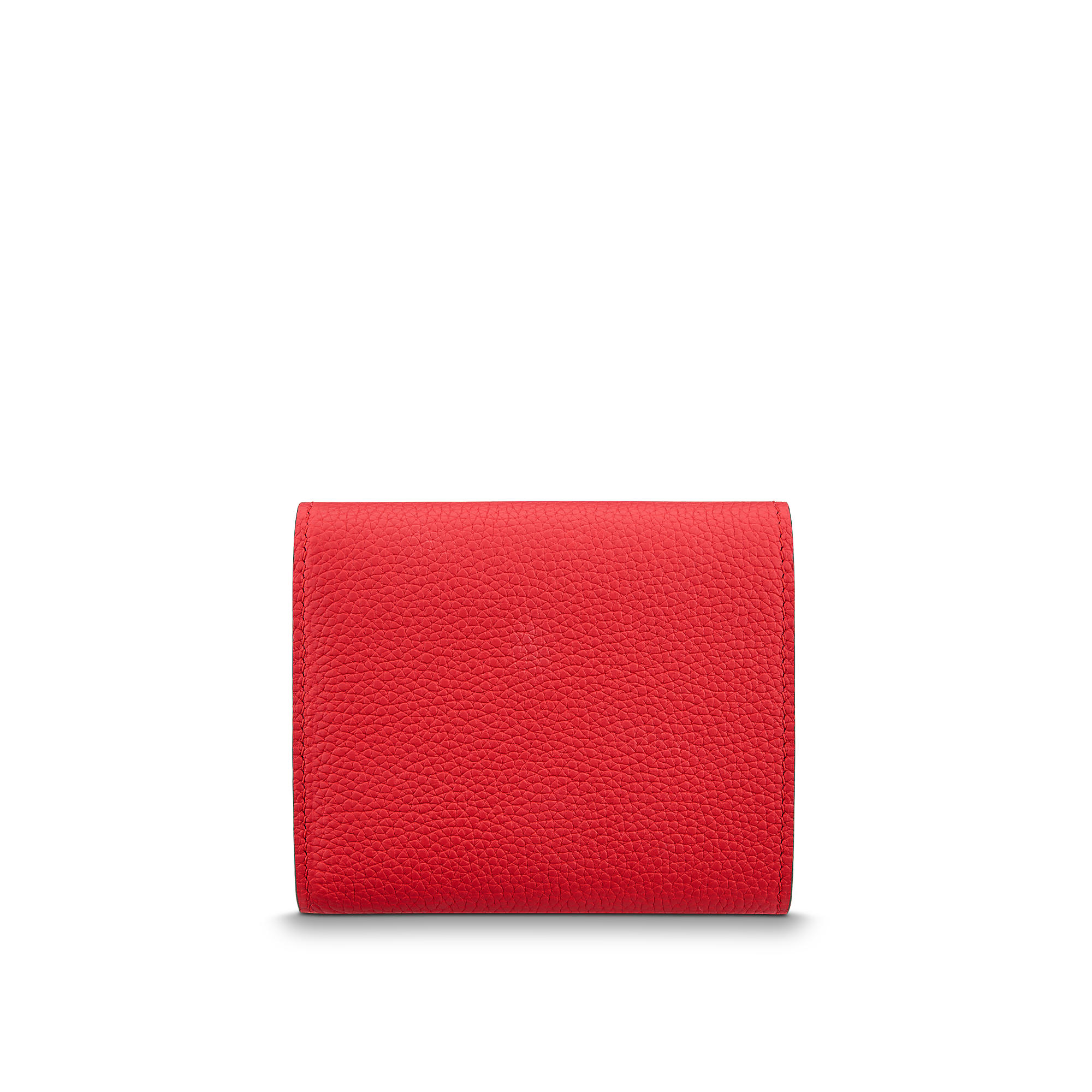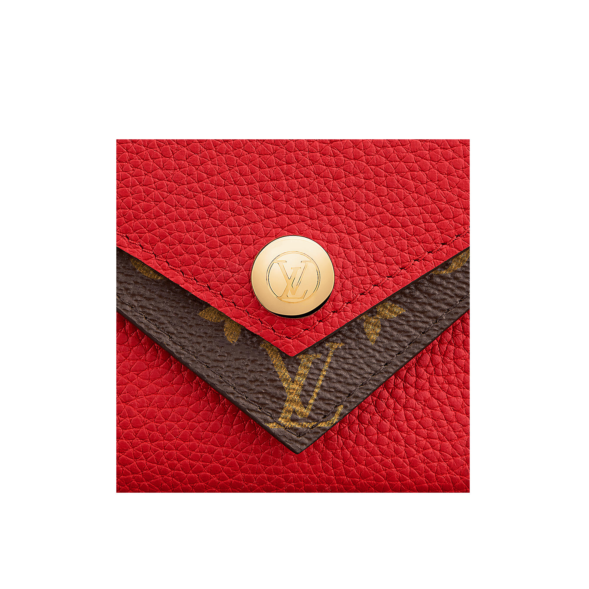 Combining fine-grained calf leather with iconic Monogram canvas, this stylish, trendy compact wallet coordinates with Louis Vuitton’s Double V bag. The original double flap conceals a secret pocket, which is ideal for tickets or coins.