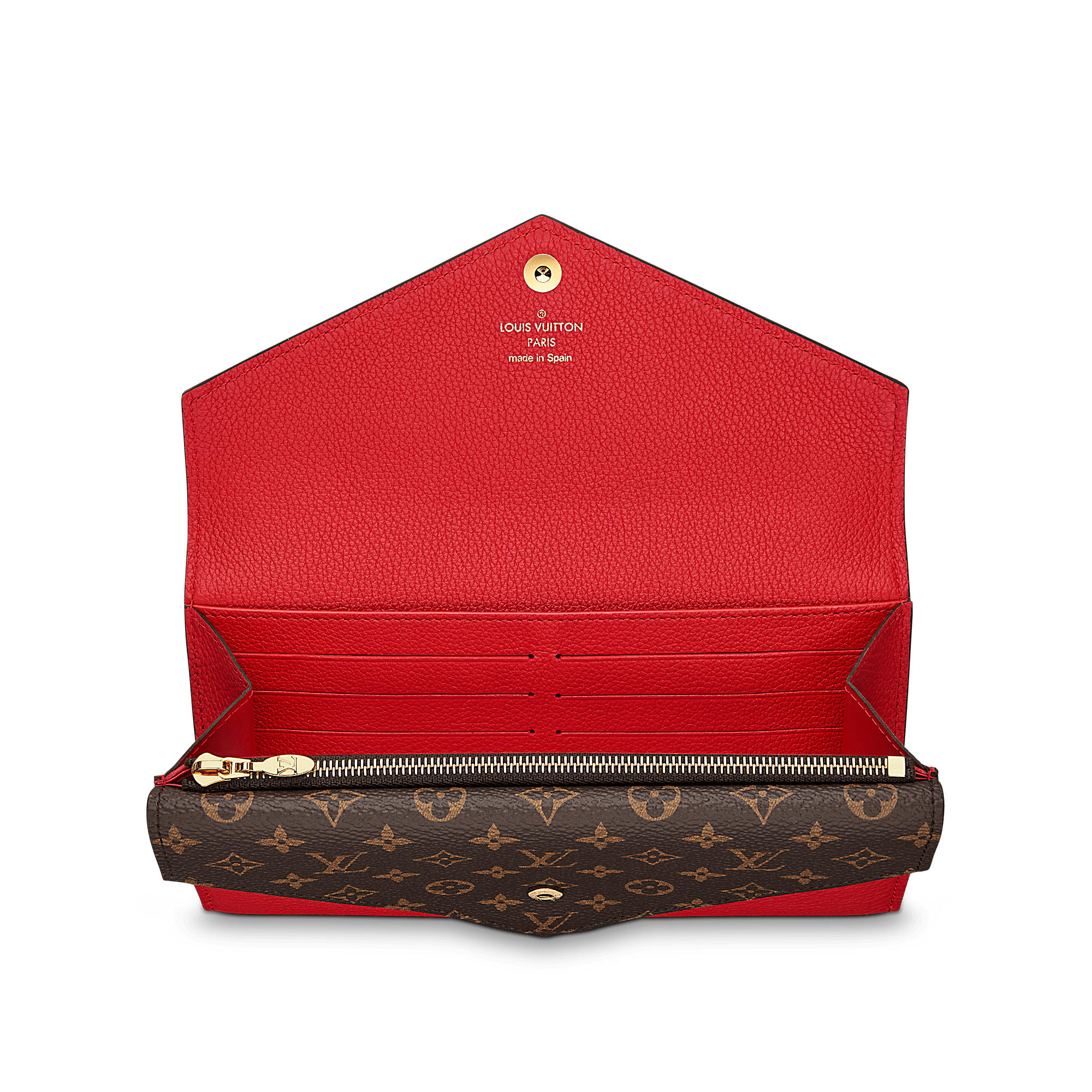 Combining fine-grained calf leather with iconic Monogram canvas, this stylish, trendy wallet coordinates with Louis Vuitton’s Double V bag. The original double flap conceals a secret pocket, which is ideal for tickets or coins.