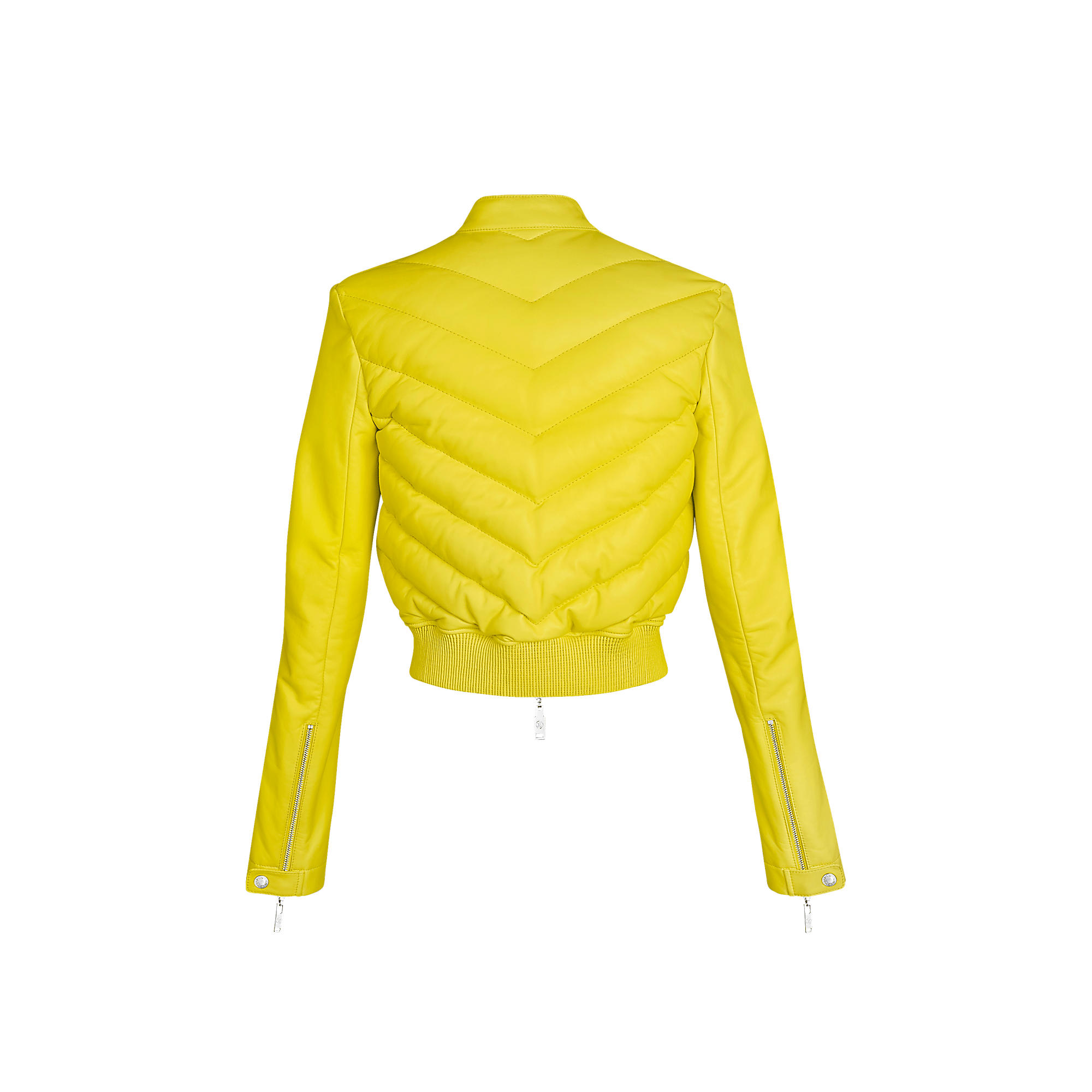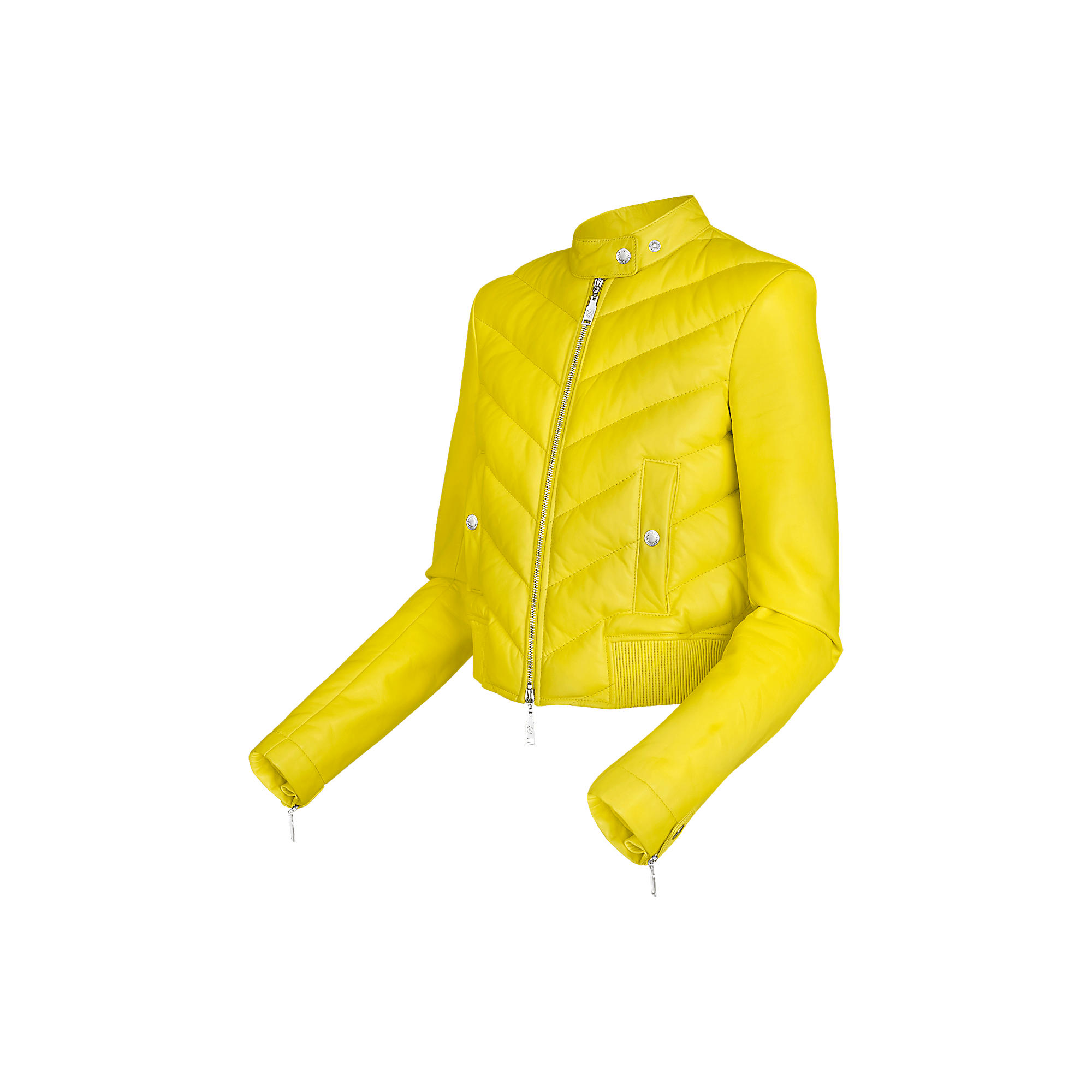 The V overstitching on the body of his down-filled bomber makes a discrete reference to the Louis Vuitton logo. Made of extremely soft lambskin, the jacket is short in the waist with a slightly higher collar.