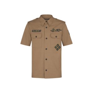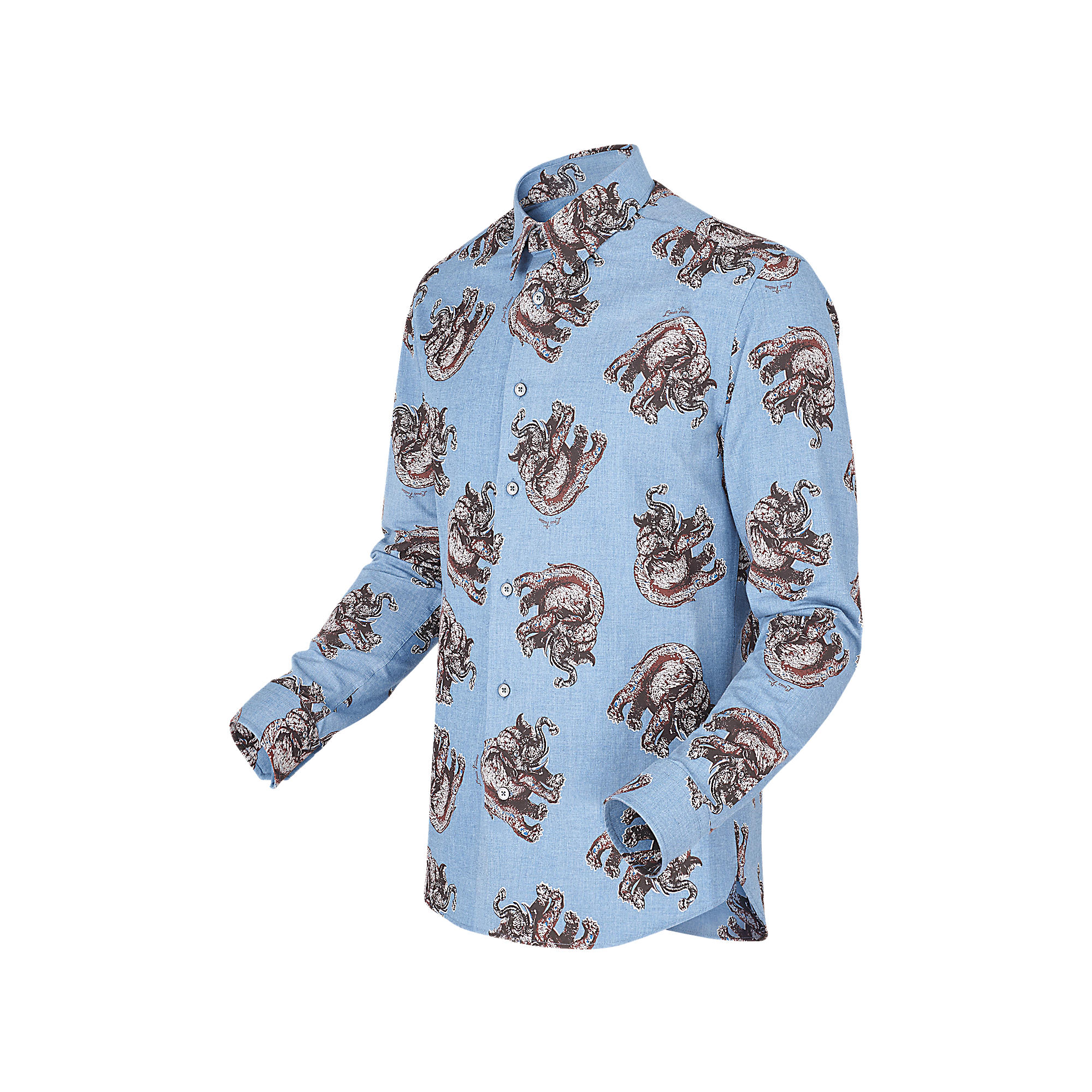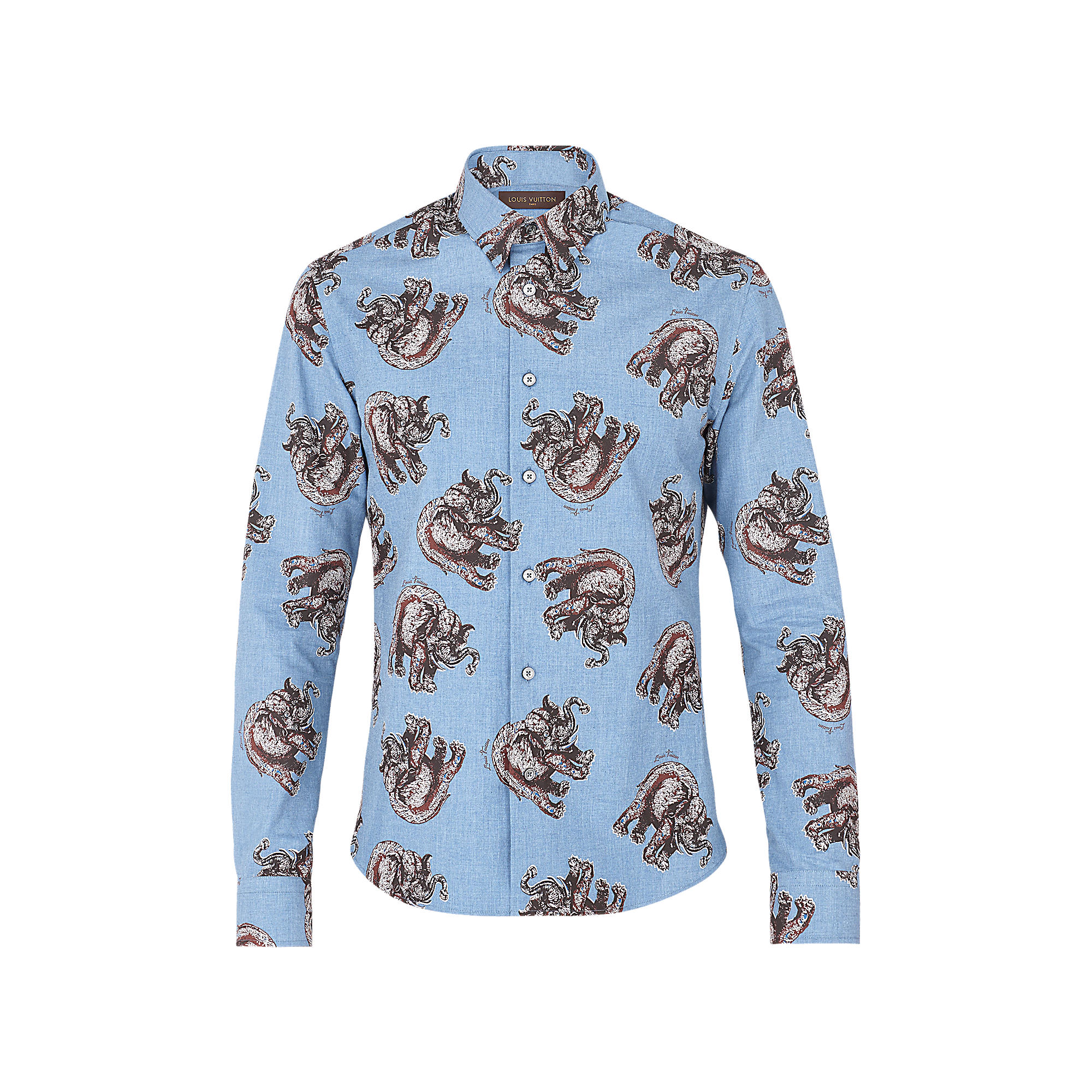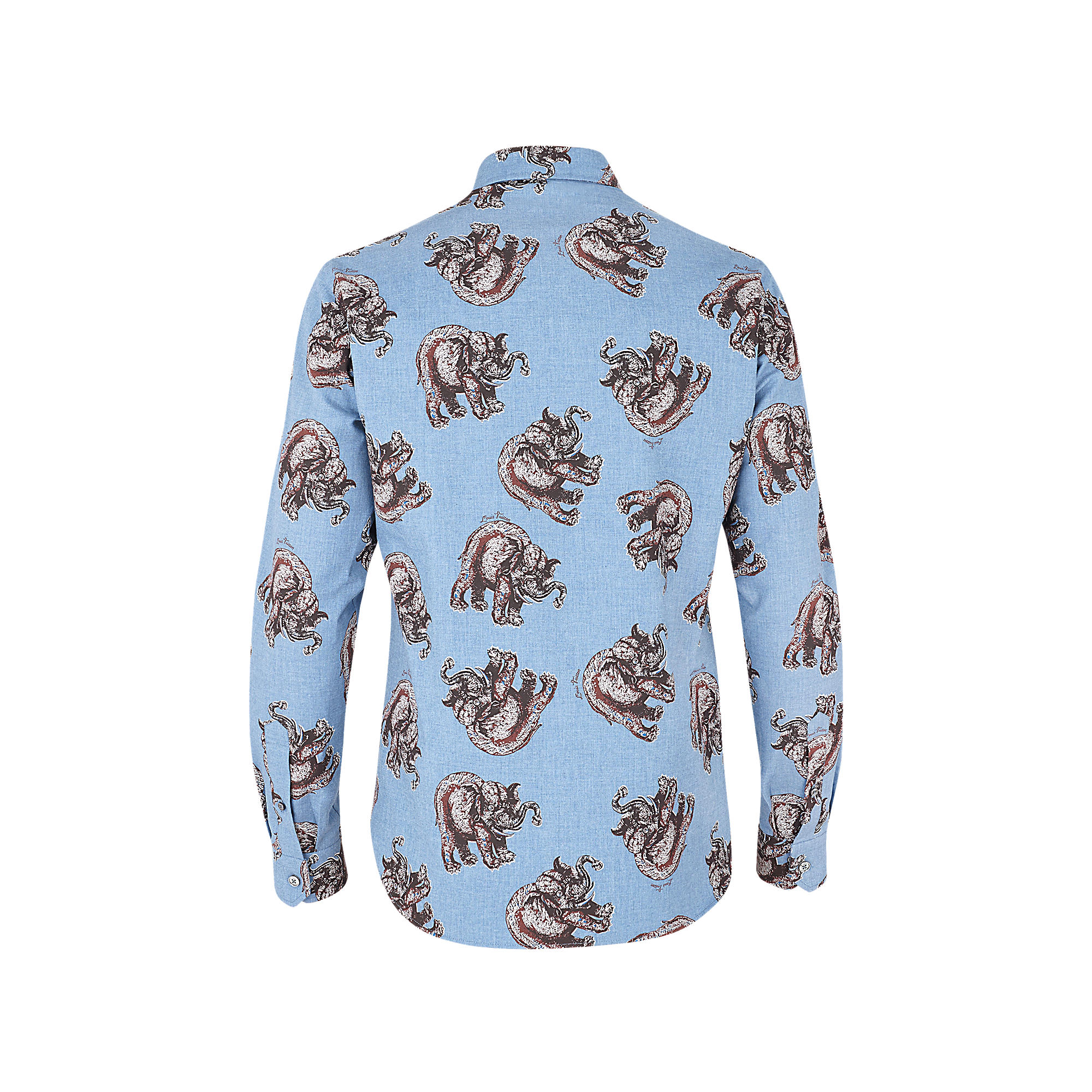 Featuring a classic fit and collar, this long-sleeved shirt is adorned with a Chapman elephant motif on classic chambray. Its discharge screen-printing technique is one of the collection’s emblematic signatures.