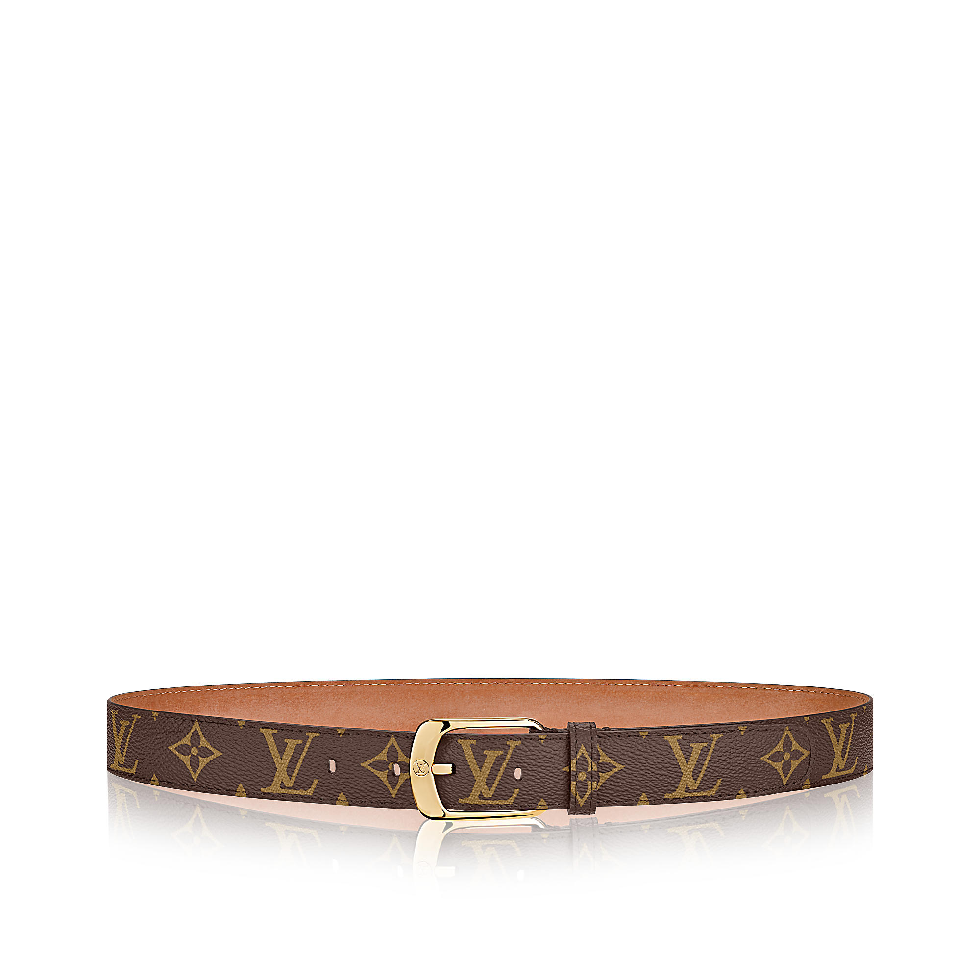 This versatile, elegant belt in Louis Vuitton’s iconic Monogram canvas has a softly rounded buckle engraved with the LV initials.